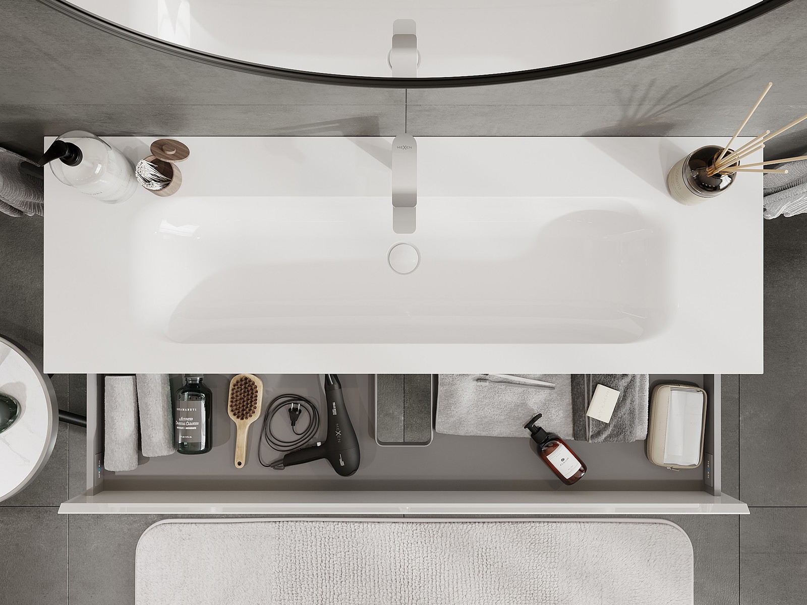El cuerpo del gabinete se entrega completamente ensamblado, lo que significa máxima comodidad y ahorro de tiempo. No tienes que pasar horas ensamblando el mueble, solo necesitas instalarlo en el lugar elegido en el baño. Es la solución ideal para personas que valoran un montaje rápido y un efecto inmediato.
