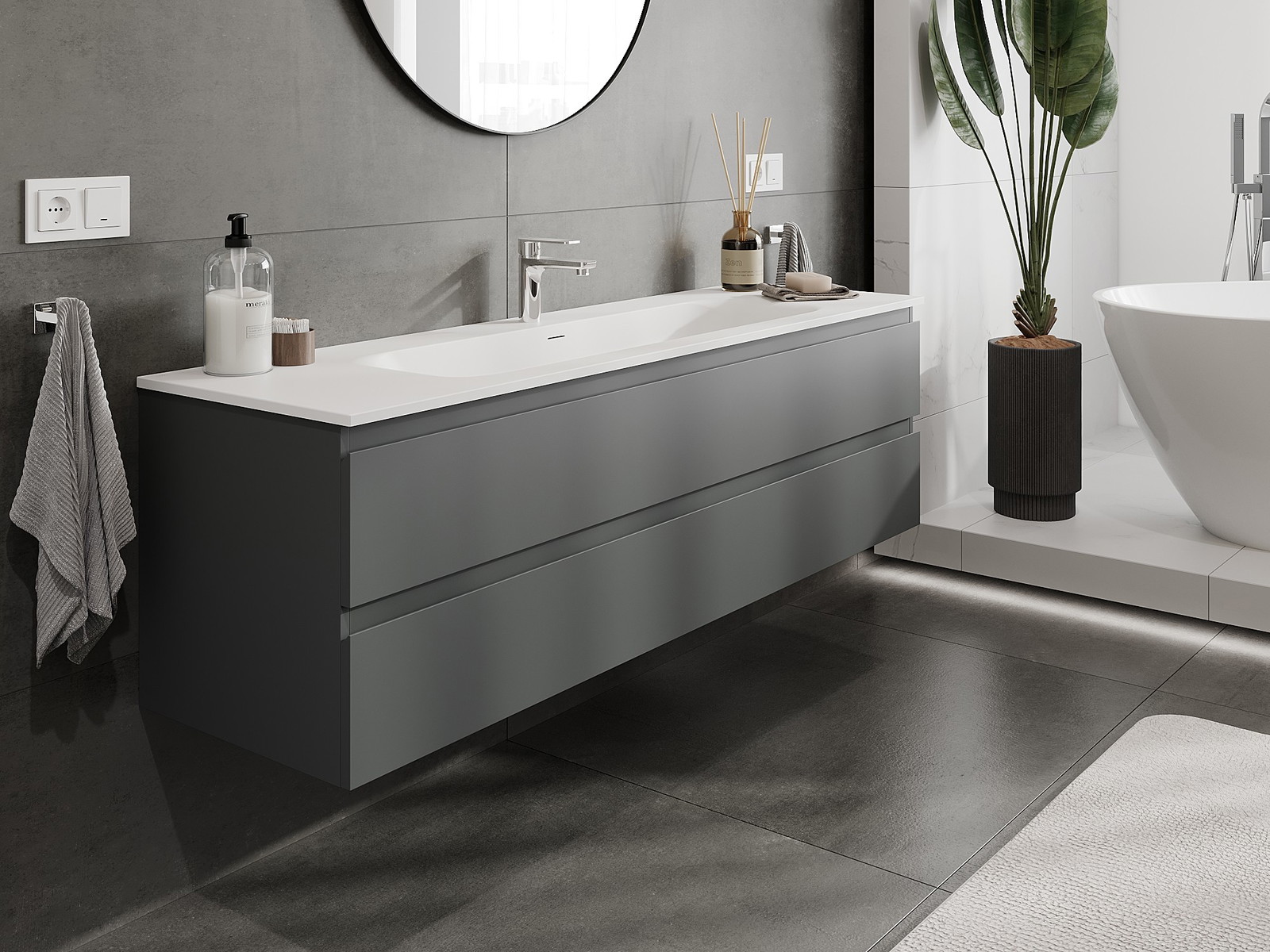 Nuestros muebles de baño modulares se pueden combinar en diferentes configuraciones de color, lo que permite una personalización completa. Se puede elegir tanto el aspecto como las funciones de los distintos elementos, lo que permite adaptar los muebles a las propias preferencias estilísticas y de uso.