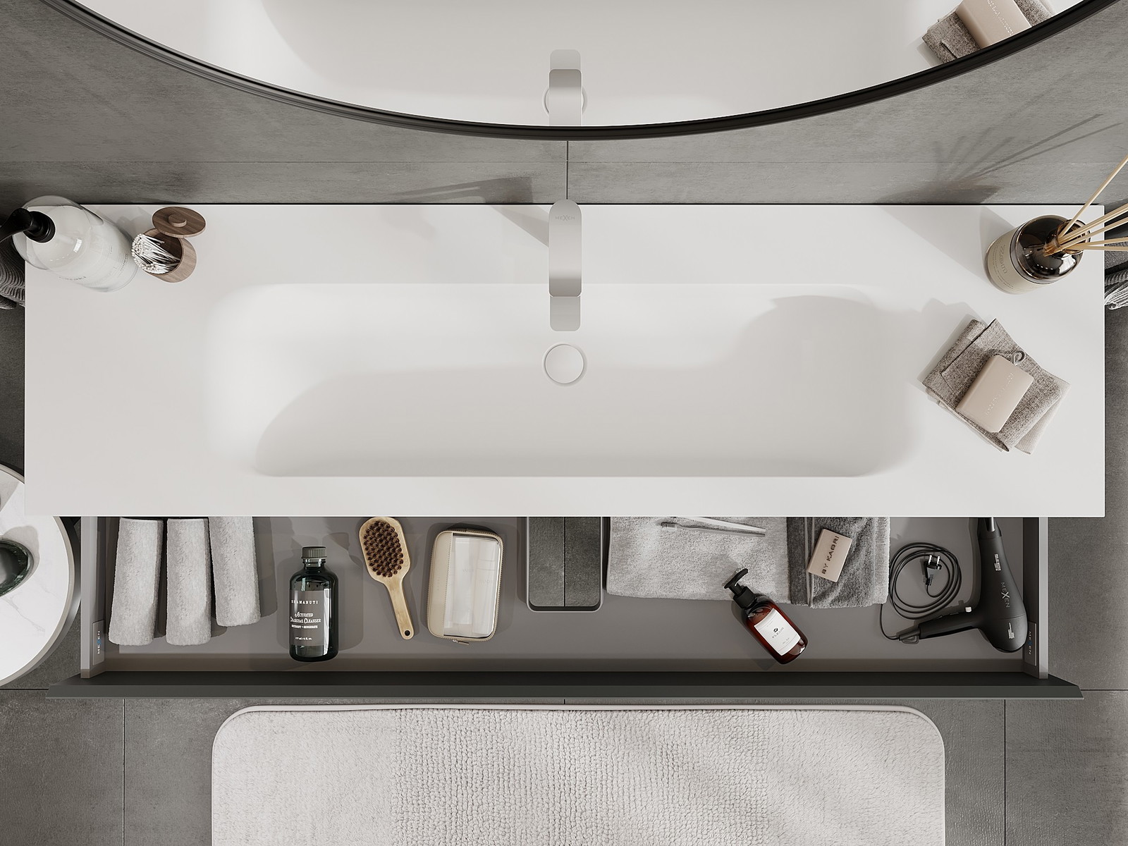 El cuerpo del gabinete se entrega completamente ensamblado, lo que significa máxima comodidad y ahorro de tiempo. No tienes que pasar horas ensamblando el mueble, solo necesitas instalarlo en el lugar elegido en el baño. Es la solución ideal para personas que valoran un montaje rápido y un efecto inmediato.