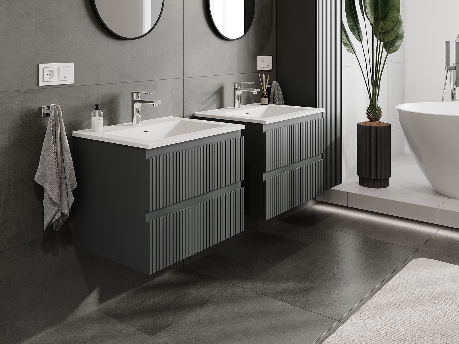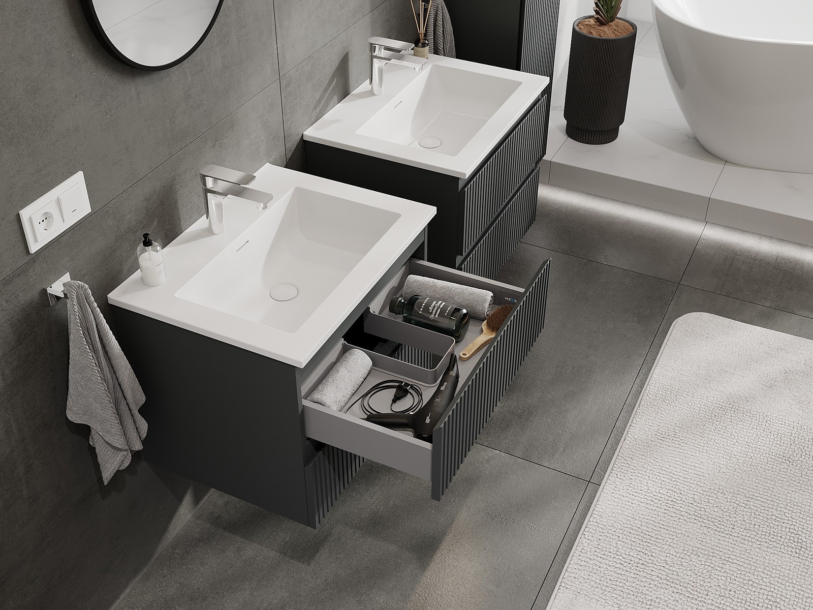 Nuestros muebles de baño modulares se pueden combinar en diferentes configuraciones de color, lo que permite una personalización completa. Se puede elegir tanto el aspecto como las funciones de los distintos elementos, lo que permite adaptar los muebles a las propias preferencias estilísticas y de uso.