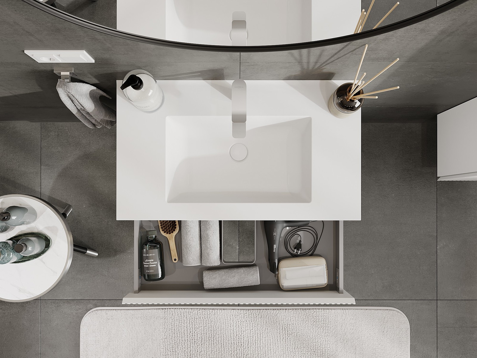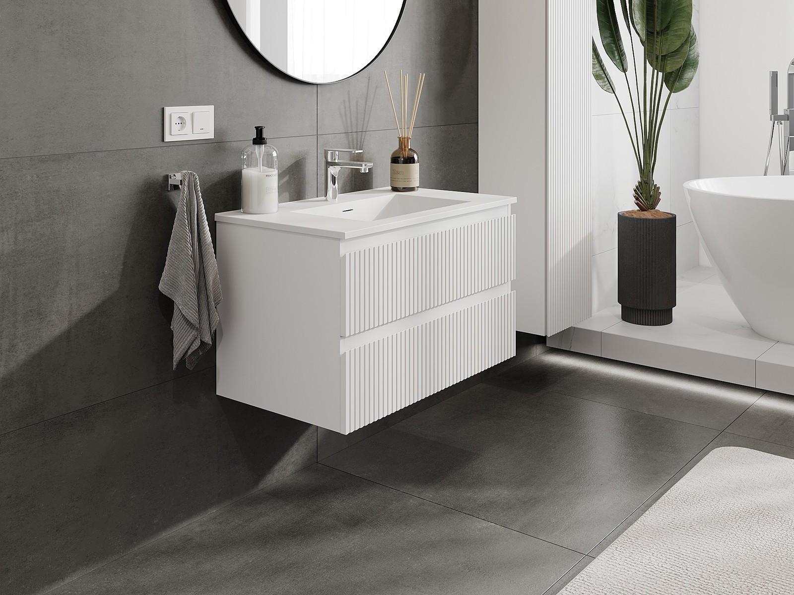 El cuerpo del gabinete se entrega completamente ensamblado, lo que significa máxima comodidad y ahorro de tiempo. No tienes que pasar horas ensamblando el mueble, solo necesitas instalarlo en el lugar elegido en el baño. Es la solución ideal para personas que valoran un montaje rápido y un efecto inmediato.