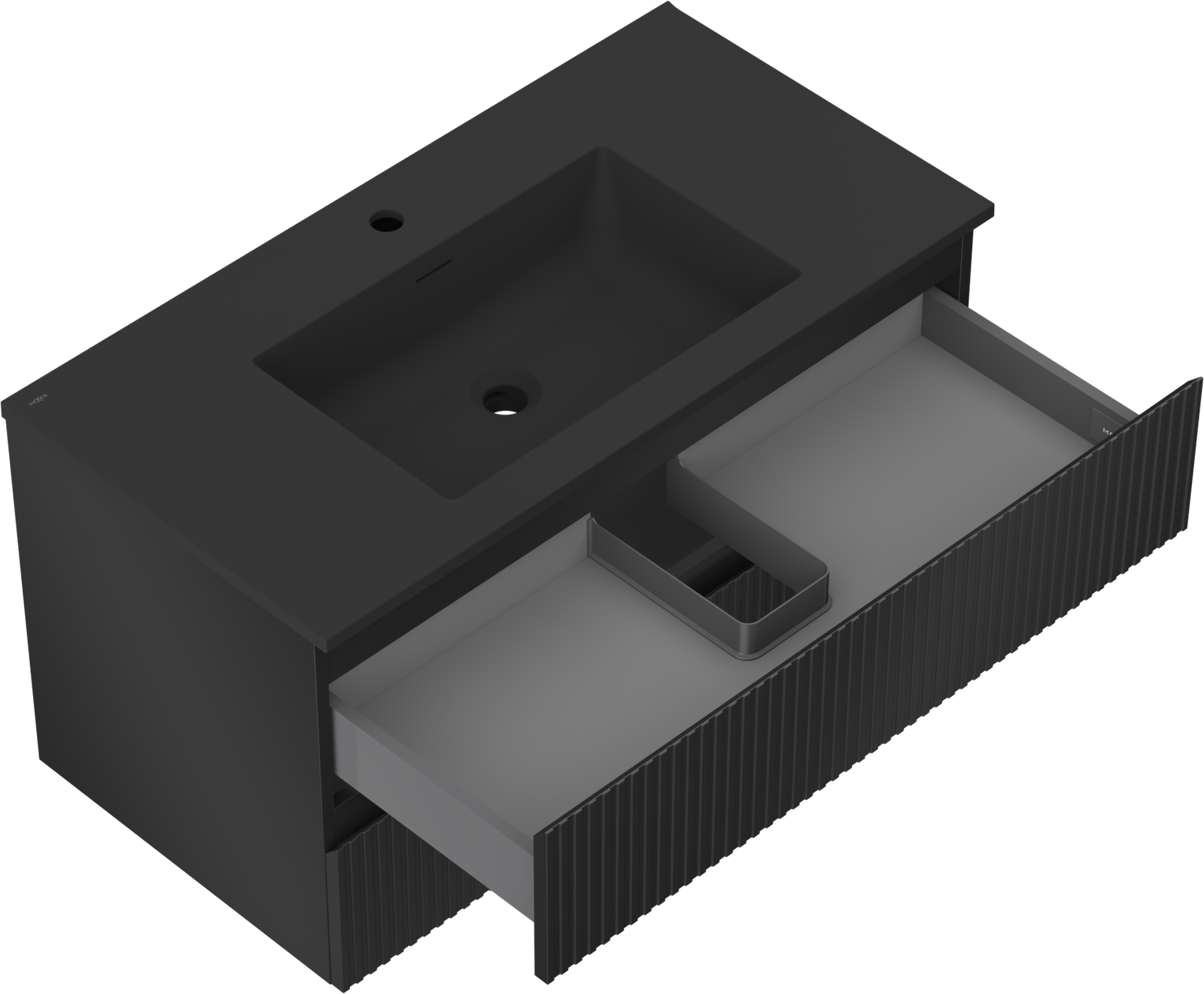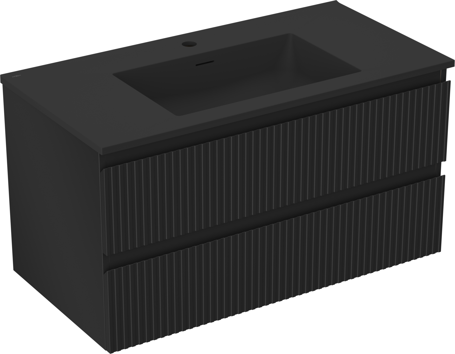 Mexen Rivel armario de baño 90 cm con lavabo Otis, 2 cajones, estriado, negro mate - 91A20-09047-2-BFF71-W18M71