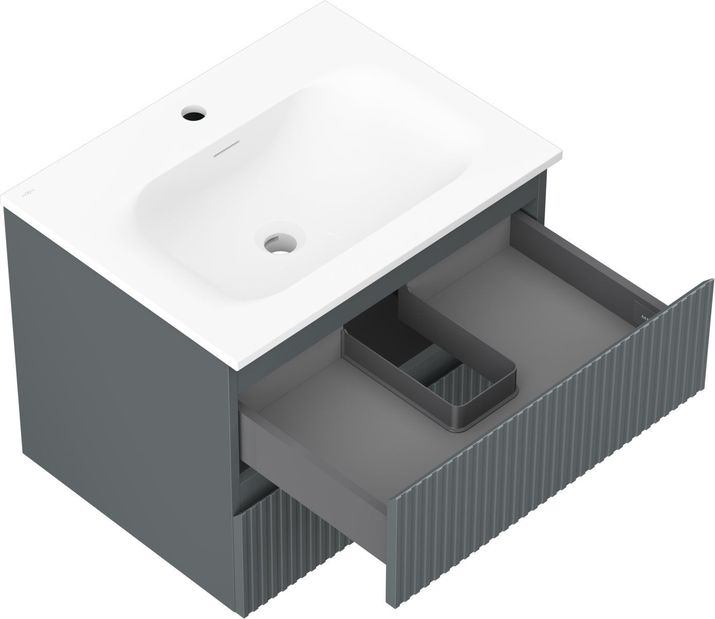 El corte en el cajón está diseñado de tal manera que pueda alojar el sifón, que es necesario en las instalaciones de lavabos. Gracias a esto, el mueble puede ser montado de manera completamente funcional, sin la necesidad de renunciar al espacio en el cajón en favor de la instalación.