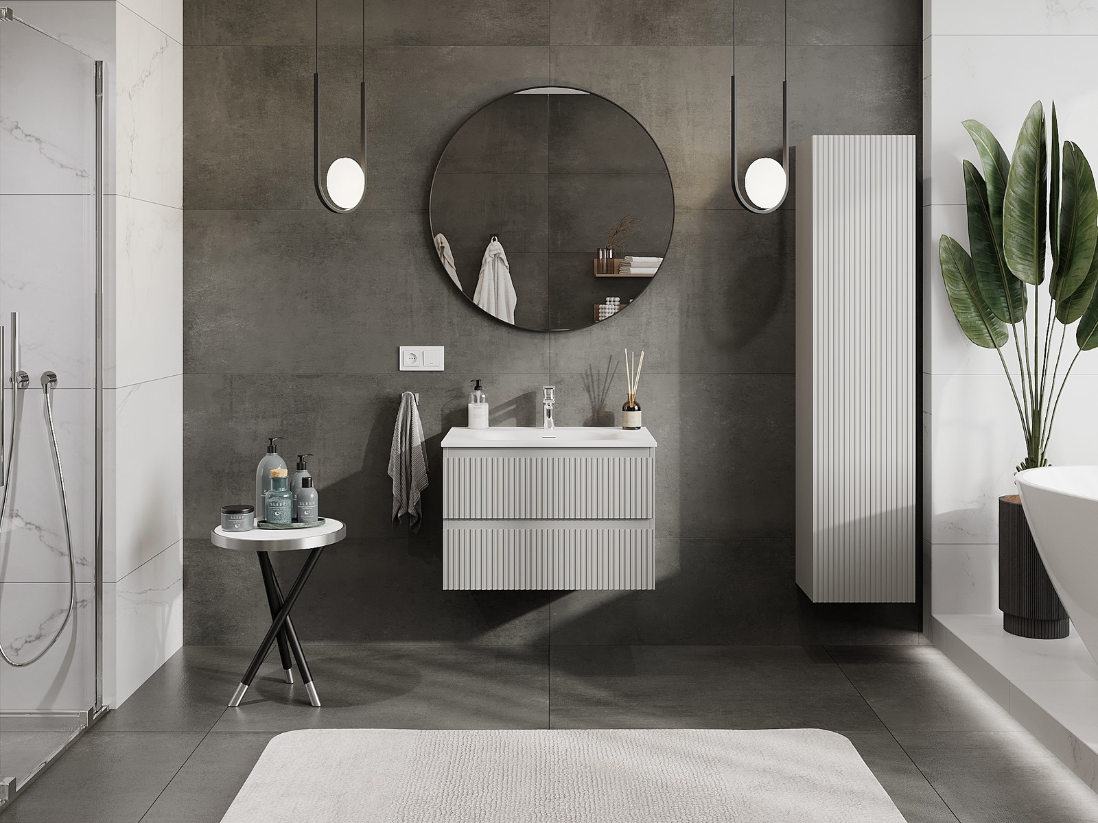 El cuerpo del gabinete se entrega completamente ensamblado, lo que significa máxima comodidad y ahorro de tiempo. No tienes que pasar horas ensamblando el mueble, solo necesitas instalarlo en el lugar elegido en el baño. Es la solución ideal para personas que valoran un montaje rápido y un efecto inmediato.