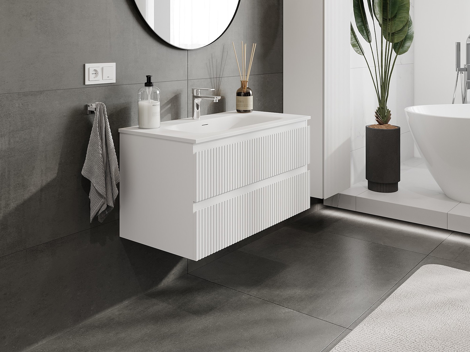 El cuerpo del gabinete se entrega completamente ensamblado, lo que significa máxima comodidad y ahorro de tiempo. No tienes que pasar horas ensamblando el mueble, solo necesitas instalarlo en el lugar elegido en el baño. Es la solución ideal para personas que valoran un montaje rápido y un efecto inmediato.