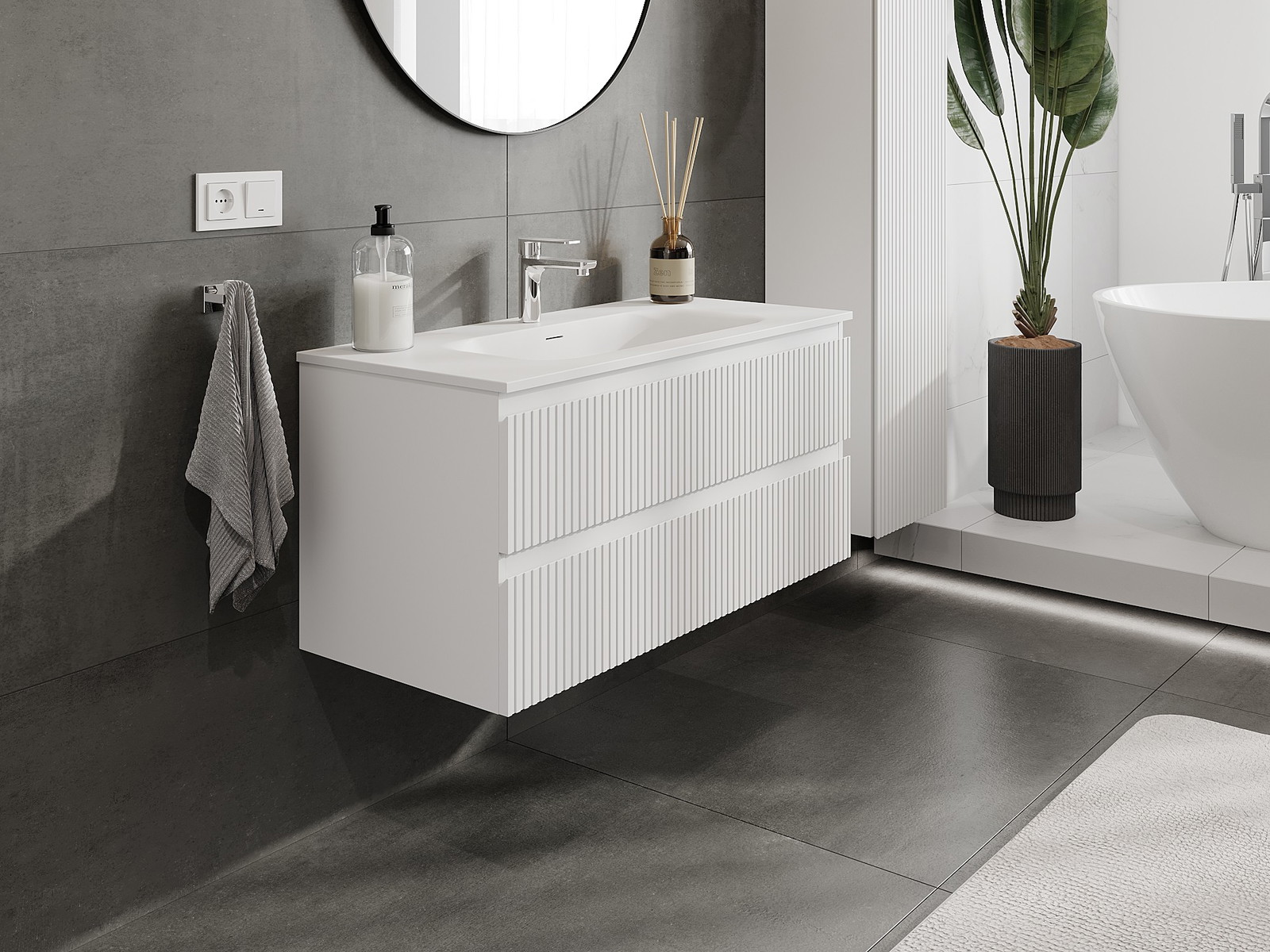 El cuerpo del gabinete se entrega completamente ensamblado, lo que significa máxima comodidad y ahorro de tiempo. No tienes que pasar horas ensamblando el mueble, solo necesitas instalarlo en el lugar elegido en el baño. Es la solución ideal para personas que valoran un montaje rápido y un efecto inmediato.