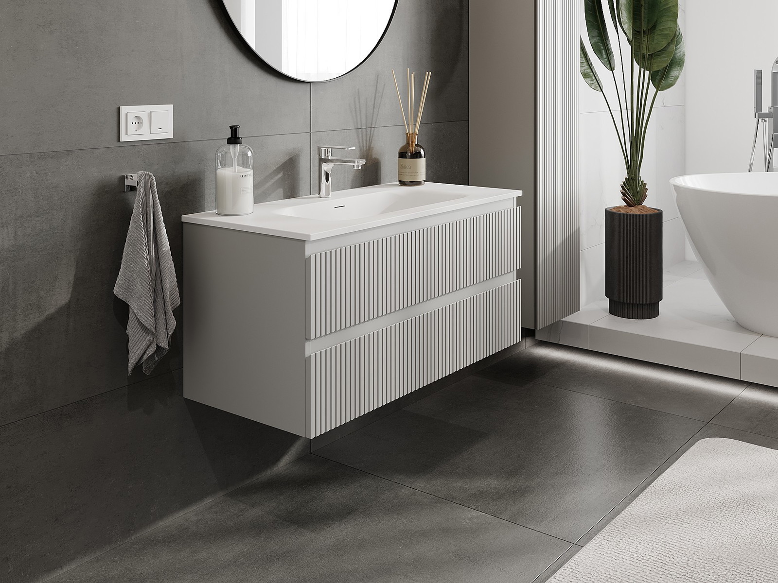El cuerpo del gabinete se entrega completamente ensamblado, lo que significa máxima comodidad y ahorro de tiempo. No tienes que pasar horas ensamblando el mueble, solo necesitas instalarlo en el lugar elegido en el baño. Es la solución ideal para personas que valoran un montaje rápido y un efecto inmediato.