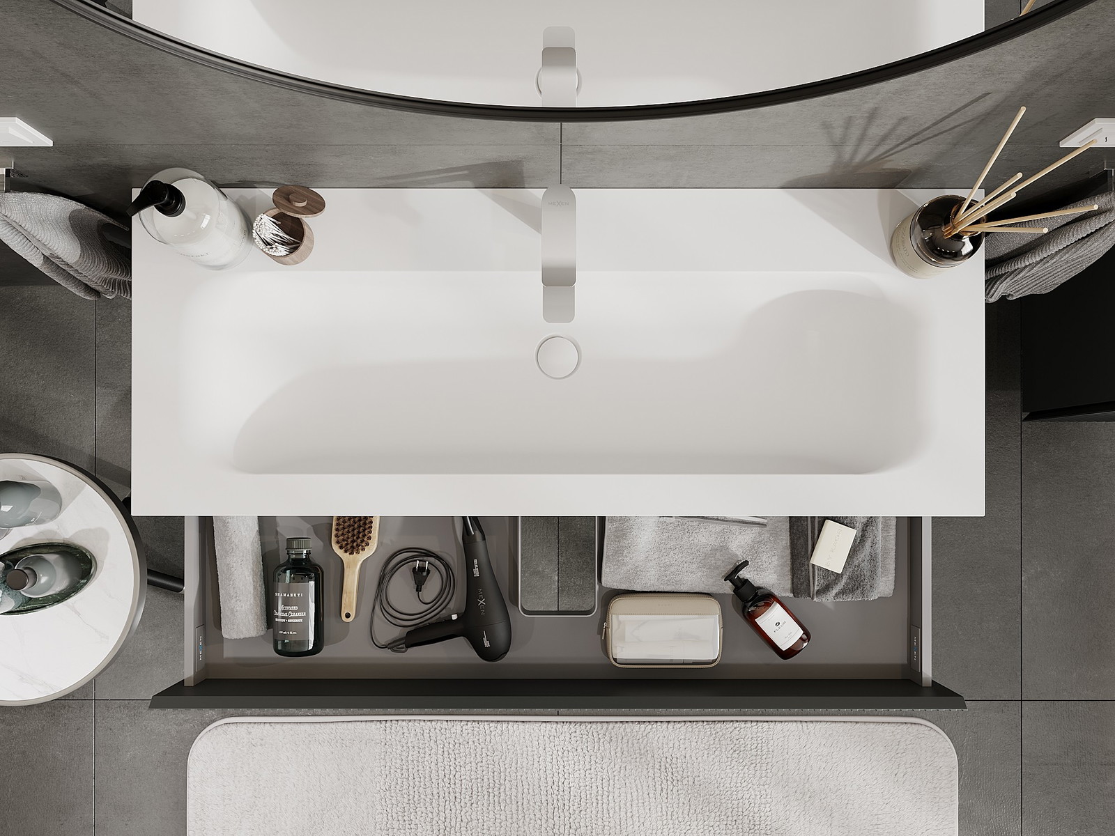 El cuerpo del gabinete se entrega completamente ensamblado, lo que significa máxima comodidad y ahorro de tiempo. No tienes que pasar horas ensamblando el mueble, solo necesitas instalarlo en el lugar elegido en el baño. Es la solución ideal para personas que valoran un montaje rápido y un efecto inmediato.