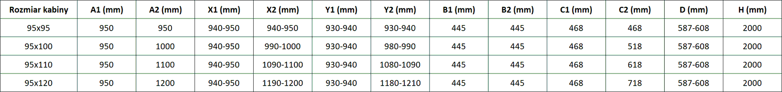 Tamaño: 95x95 cm (puerta derecha 95 cm, puerta izquierda 95 cm)