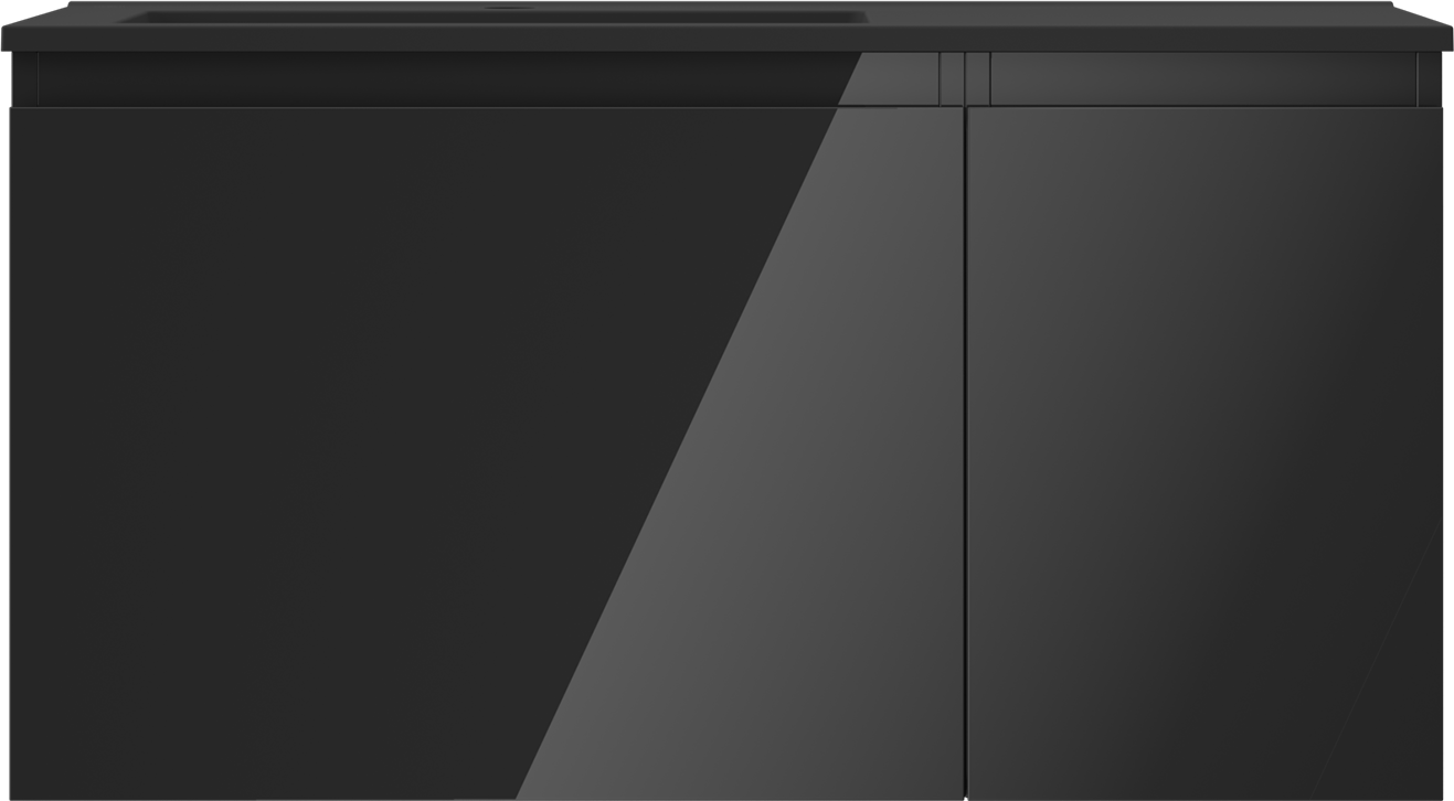 Mexen Orio mueble de baño 90 cm con lavabo Otis izquierdo, 1S, 1D, negro brillo/negro mate - 91A13-09047-3-BBFF70-W18L71