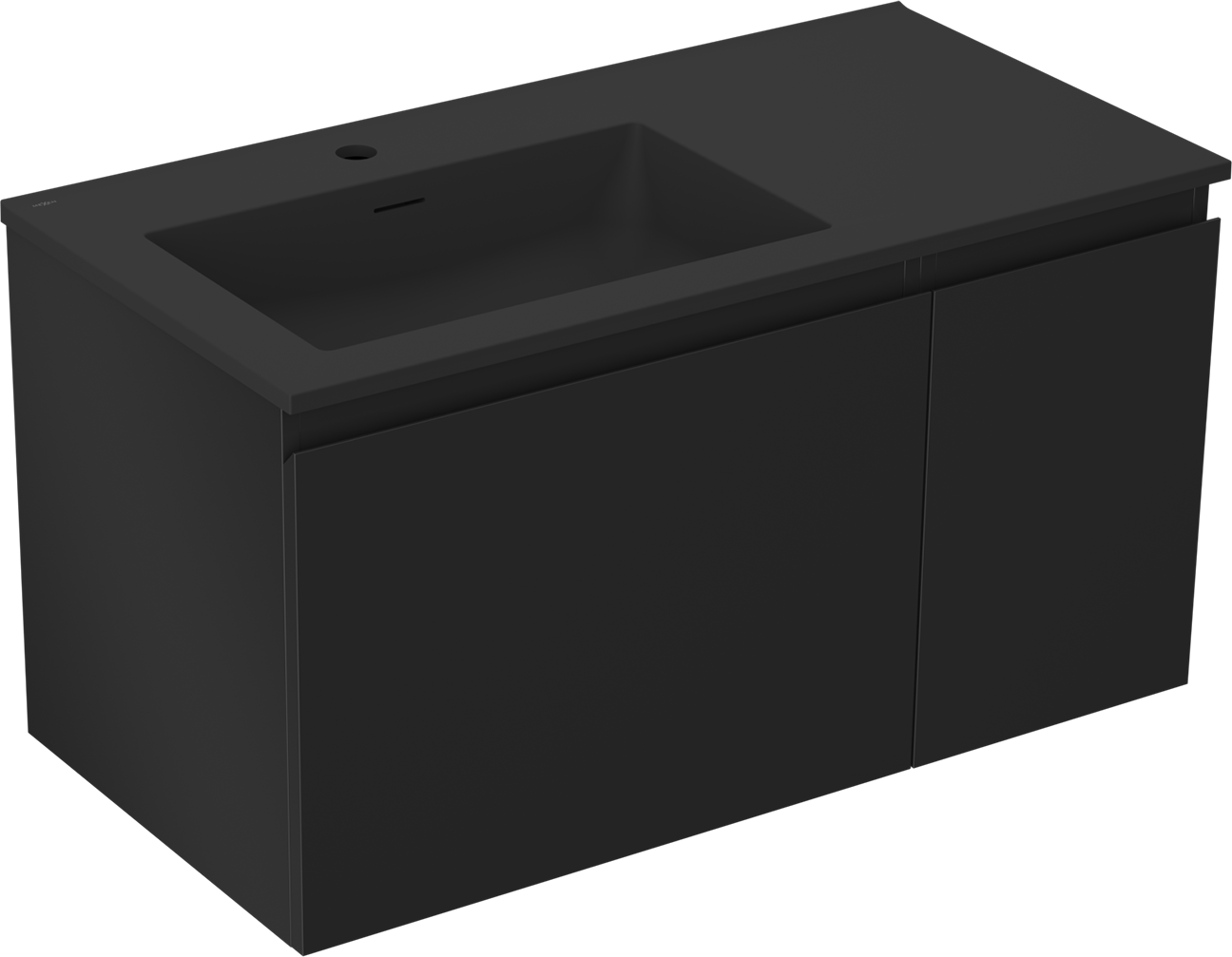 Mexen Orio mueble de baño de 90 cm con lavabo Otis izquierdo, 1S, 1D, negro mate - 91A13-09047-3-BBFF71-W18L71
