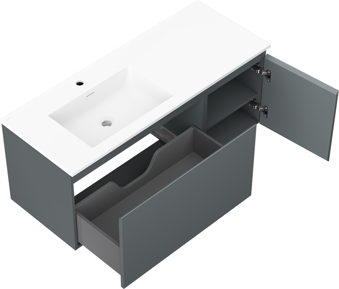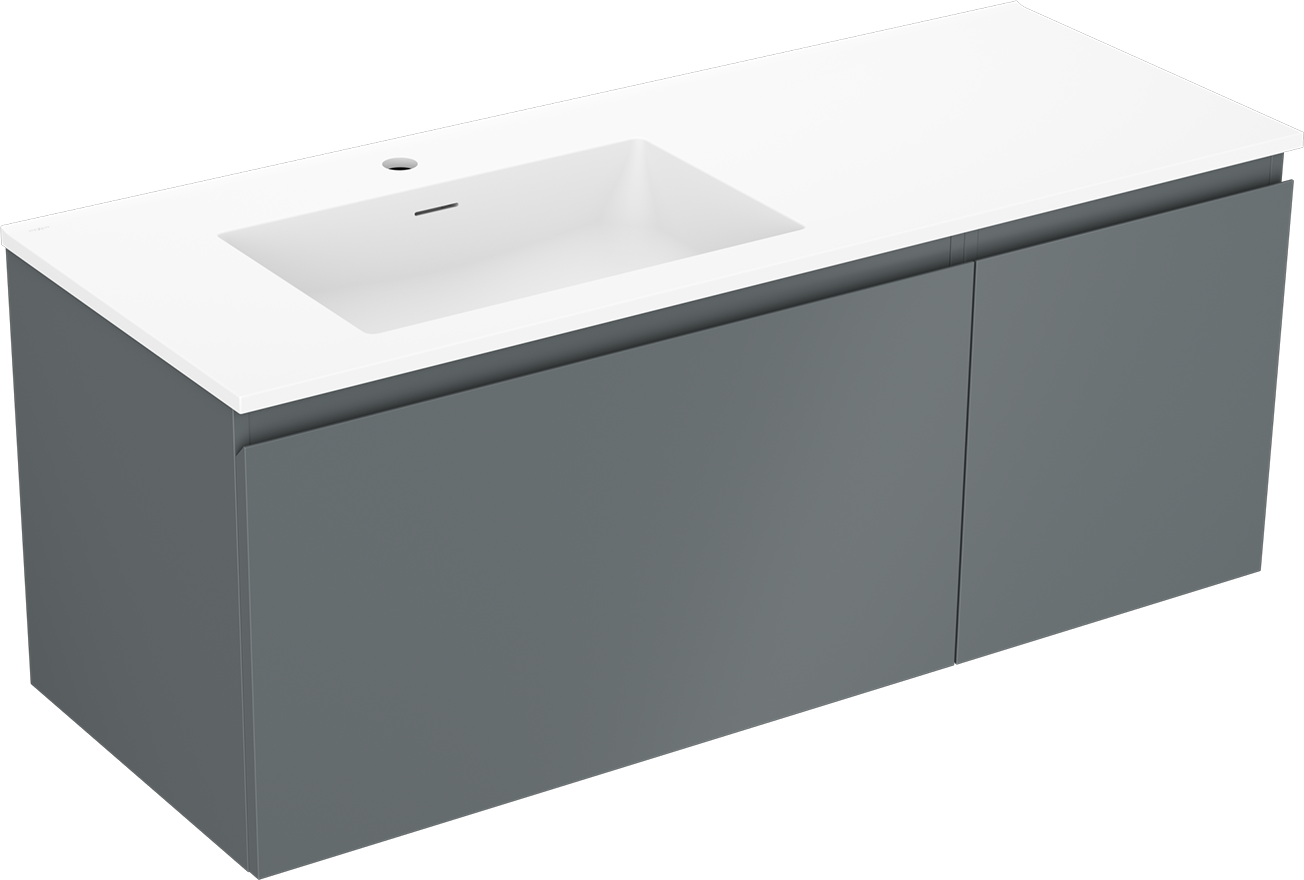 Mexen Orio armario de baño de 120 cm con lavabo Otis izquierdo, 1S, 1D, grafito mate/blanco mate - 91A13-12047-3-BBFF66-W18L01
