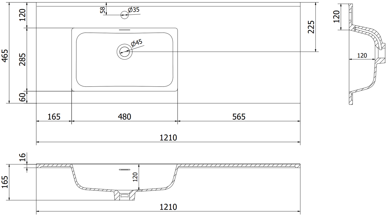 El corte en el cajón está diseñado de tal manera que pueda alojar el sifón, que es necesario en las instalaciones de lavabos. Gracias a esto, el mueble puede ser montado de manera completamente funcional, sin la necesidad de renunciar al espacio en el cajón en favor de la instalación.