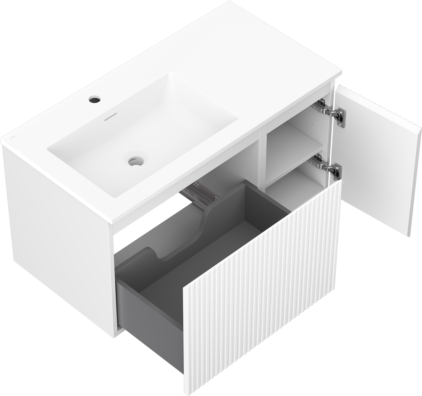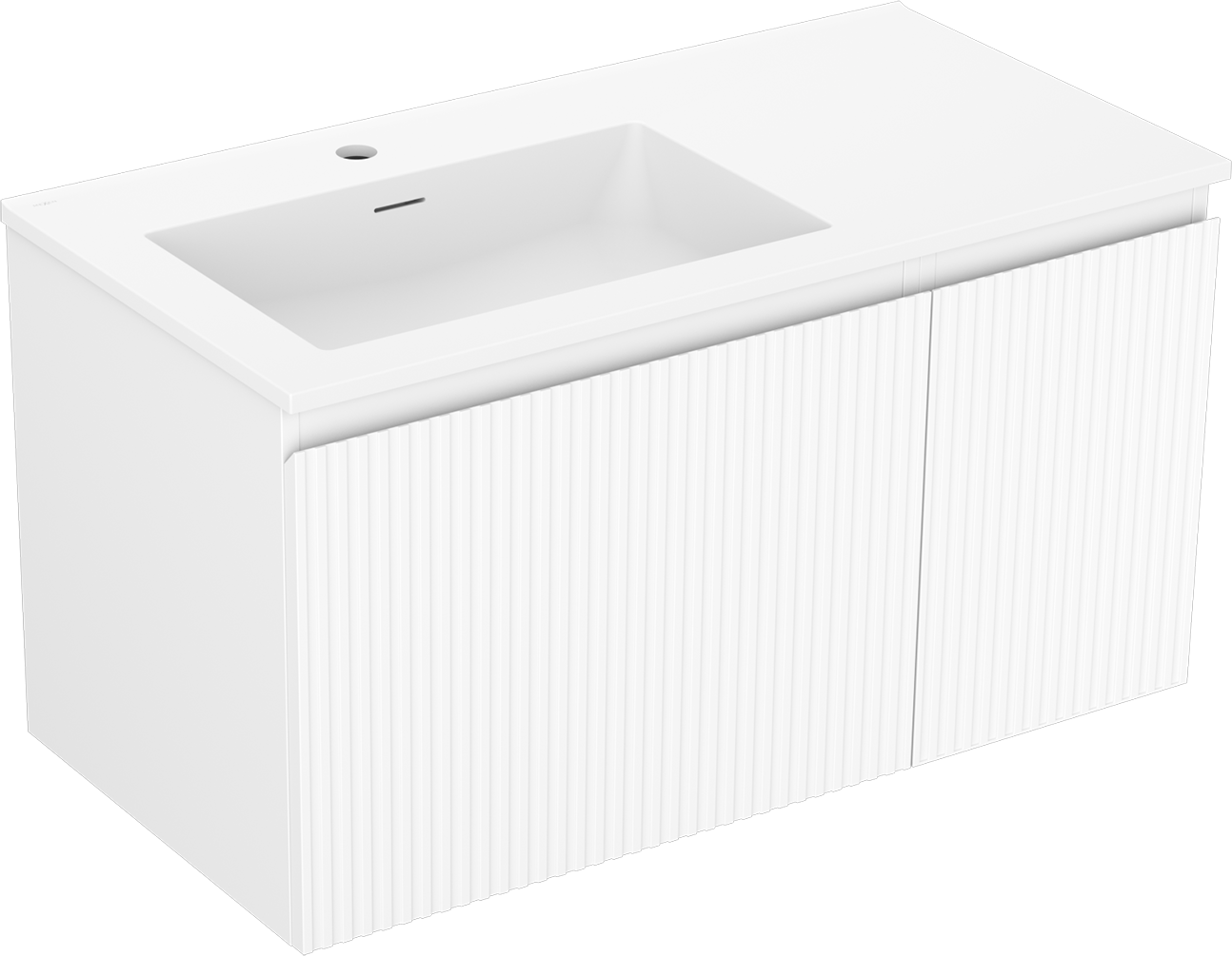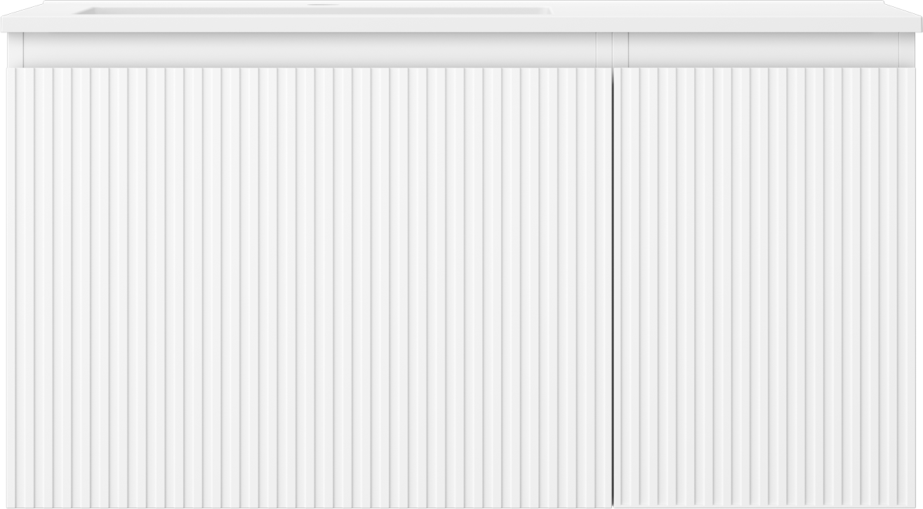 Mexen Rivel armario de baño de 90 cm con lavabo Otis izquierdo, 1S, 1D, estriado, blanco mate - 91A23-09047-3-BBFF01-W18L01