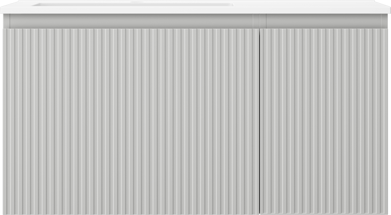 Mexen Rivel mueble de baño de 90 cm con lavabo Otis izquierdo, 1 cajón, 1 puerta, estriado, gris mate/blanco mate