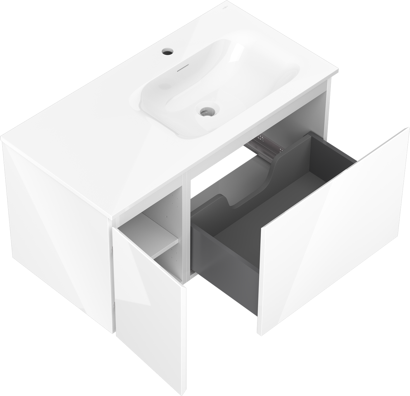 El cuerpo del gabinete se entrega completamente ensamblado, lo que significa máxima comodidad y ahorro de tiempo. No tienes que pasar horas ensamblando el mueble, solo necesitas instalarlo en el lugar elegido en el baño. Es la solución ideal para personas que valoran un montaje rápido y un efecto inmediato.