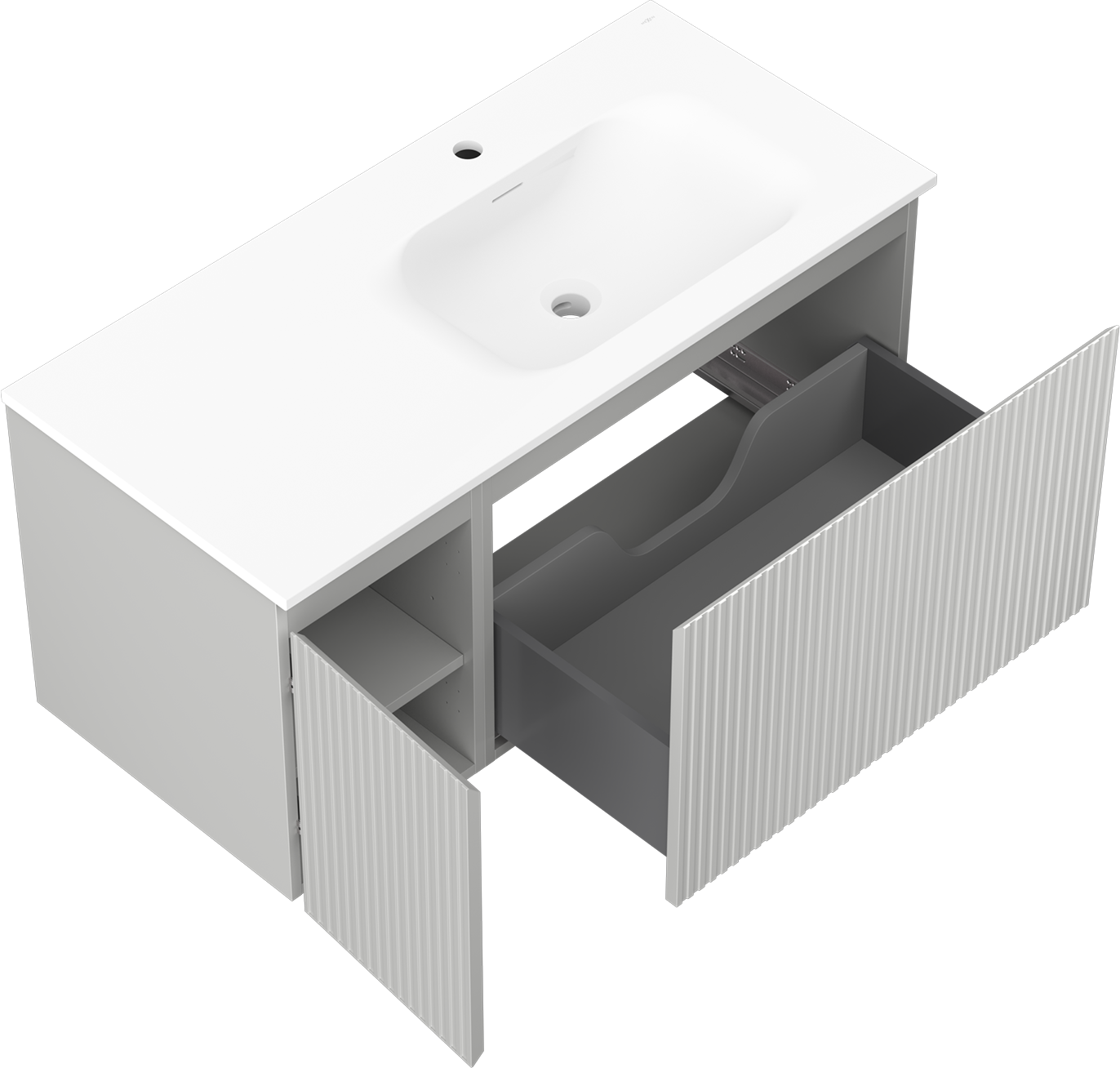 El corte en el cajón está diseñado de tal manera que pueda alojar el sifón, que es necesario en las instalaciones de lavabos. Gracias a esto, el mueble puede ser montado de manera completamente funcional, sin la necesidad de renunciar al espacio en el cajón en favor de la instalación.