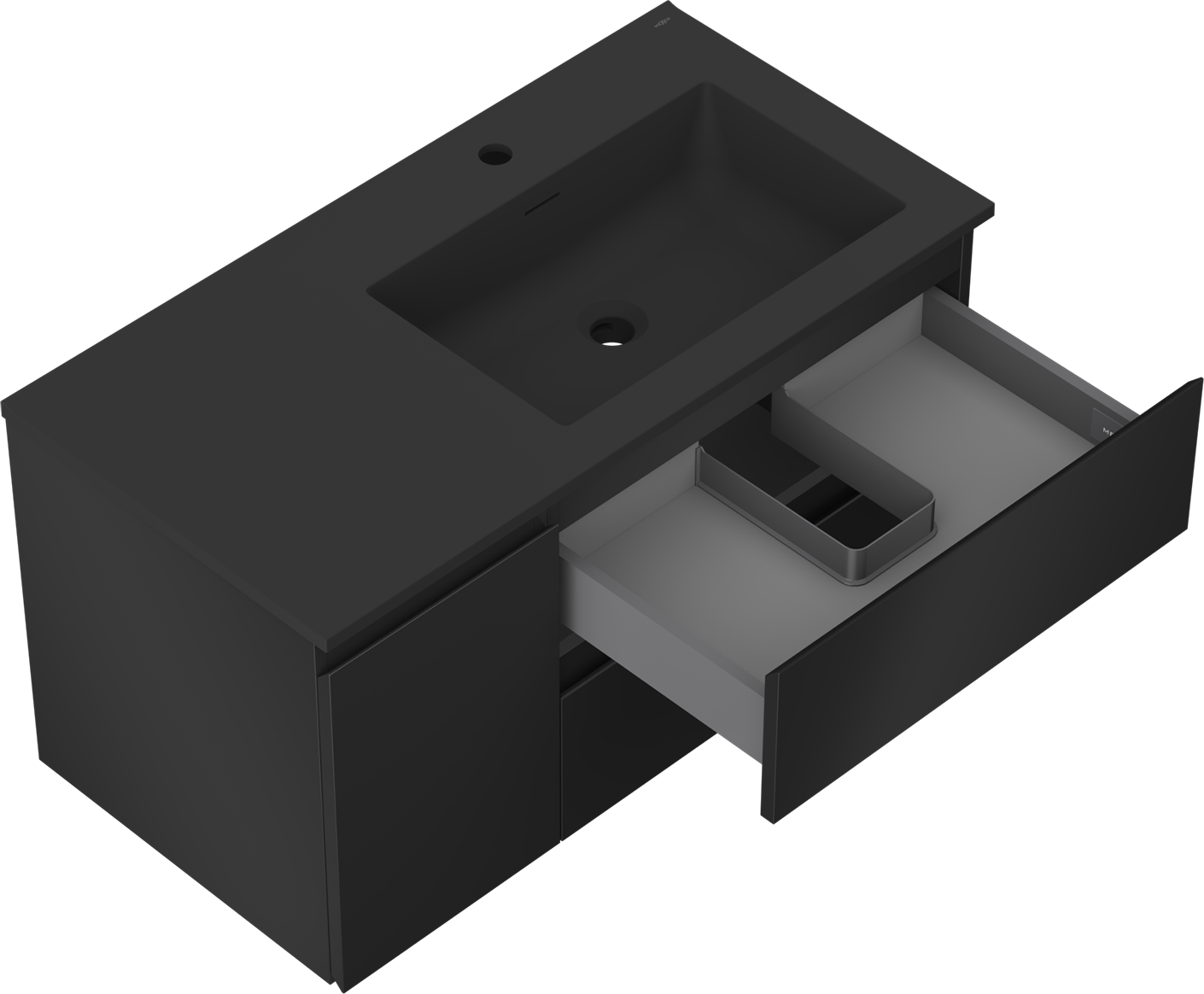 El corte en el cajón está diseñado de tal manera que pueda alojar el sifón, que es necesario en las instalaciones de lavabos. Gracias a esto, el mueble puede ser montado de manera completamente funcional, sin la necesidad de renunciar al espacio en el cajón en favor de la instalación.