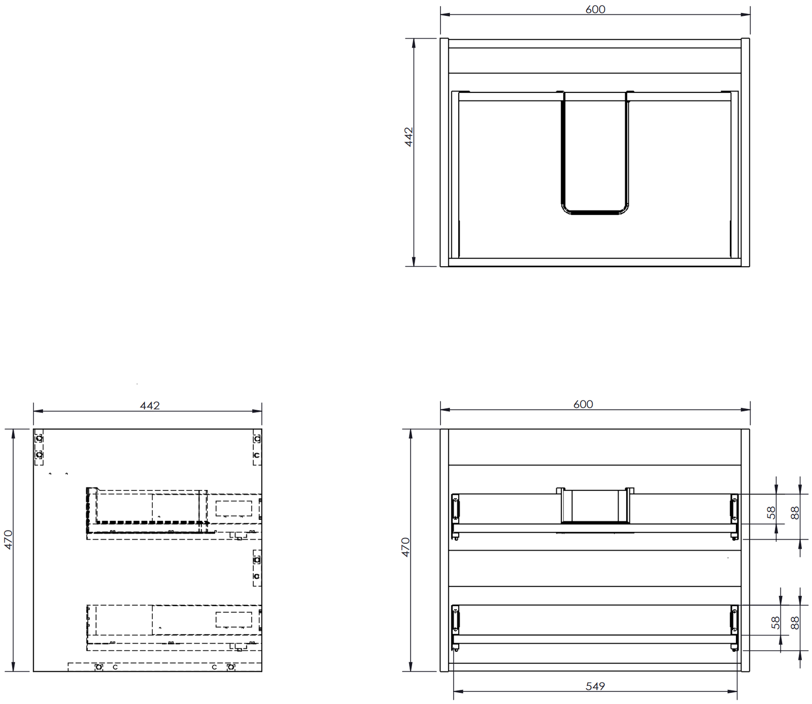 El corte en el cajón está diseñado de tal manera que pueda alojar el sifón, que es necesario en las instalaciones de lavabos. Gracias a esto, el mueble puede ser montado de manera completamente funcional, sin la necesidad de renunciar al espacio en el cajón en favor de la instalación.