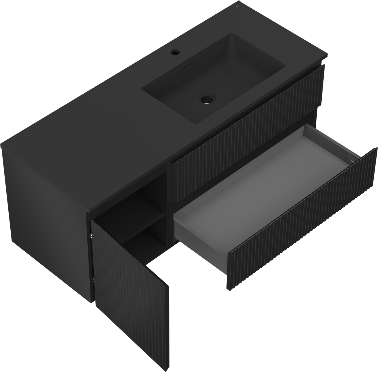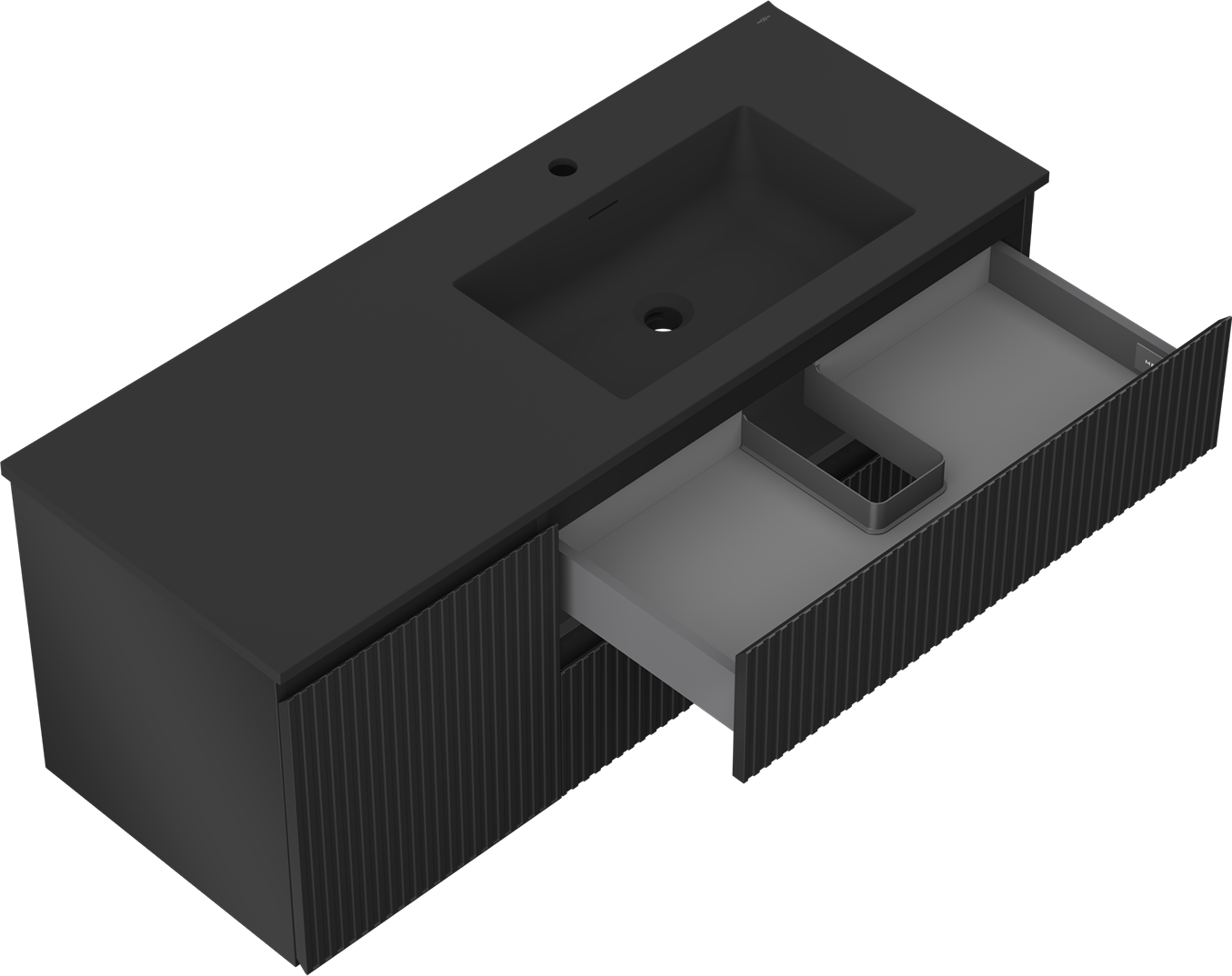El corte en el cajón está diseñado de tal manera que pueda alojar el sifón, que es necesario en las instalaciones de lavabos. Gracias a esto, el mueble puede ser montado de manera completamente funcional, sin la necesidad de renunciar al espacio en el cajón en favor de la instalación.