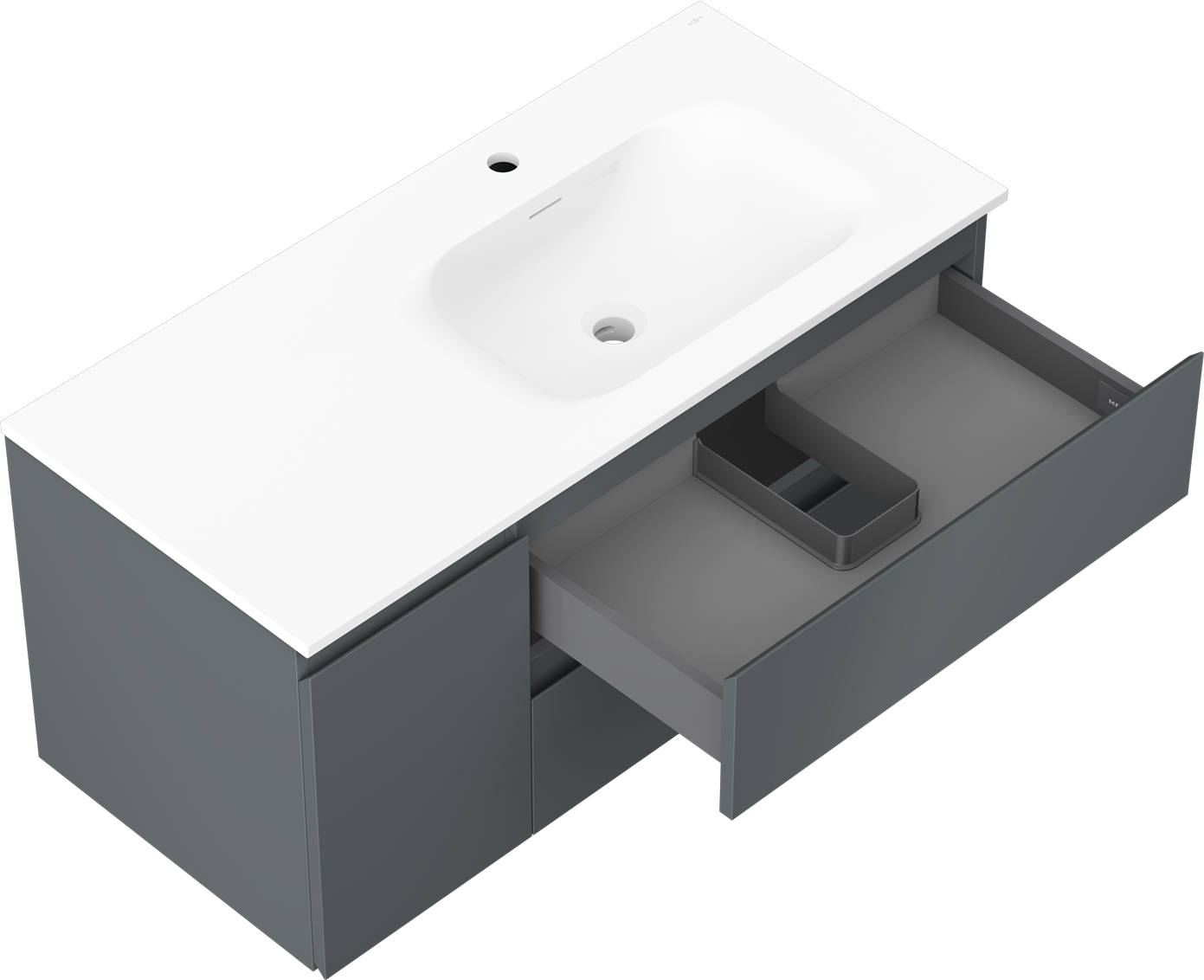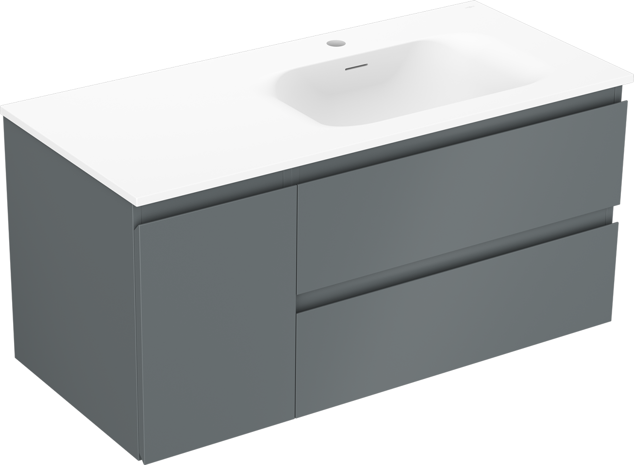 Mexen Orio mueble de baño de 100 cm con lavabo Vela a la derecha, 2S, 1D, grafito mate/blanco mate