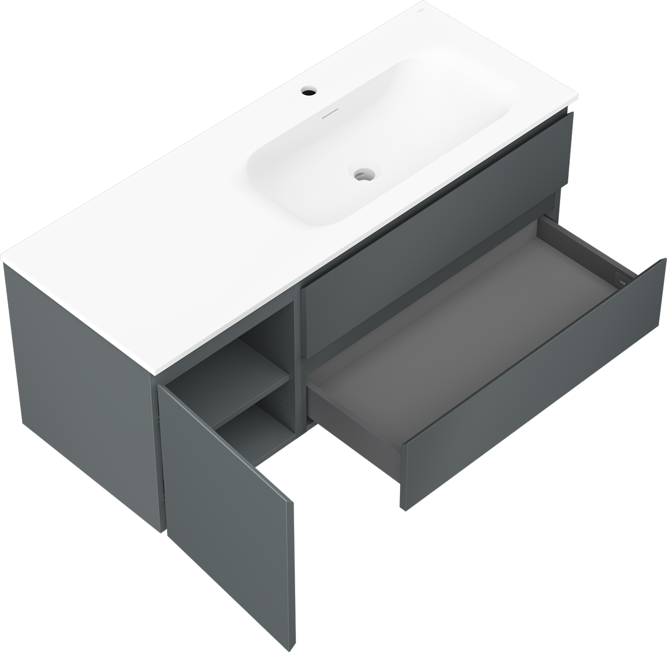 Nuestros muebles de baño modulares se pueden combinar en diferentes configuraciones de color, lo que permite una personalización completa. Se puede elegir tanto el aspecto como las funciones de los distintos elementos, lo que permite adaptar los muebles a las propias preferencias estilísticas y de uso.