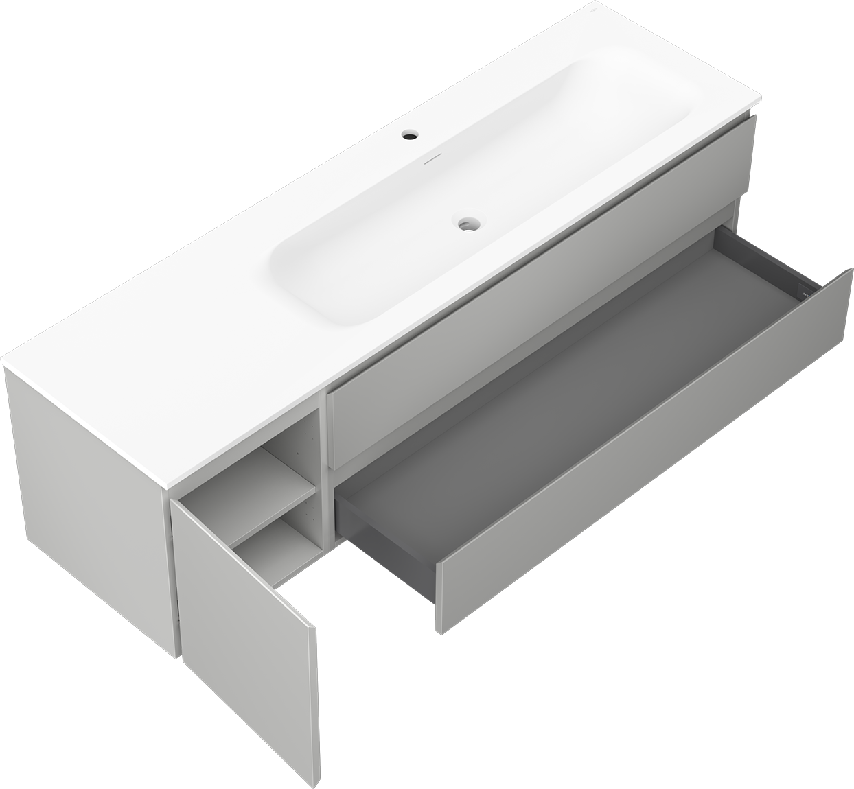Nuestros muebles de baño modulares se pueden combinar en diferentes configuraciones de color, lo que permite una personalización completa. Se puede elegir tanto el aspecto como las funciones de los distintos elementos, lo que permite adaptar los muebles a las propias preferencias estilísticas y de uso.