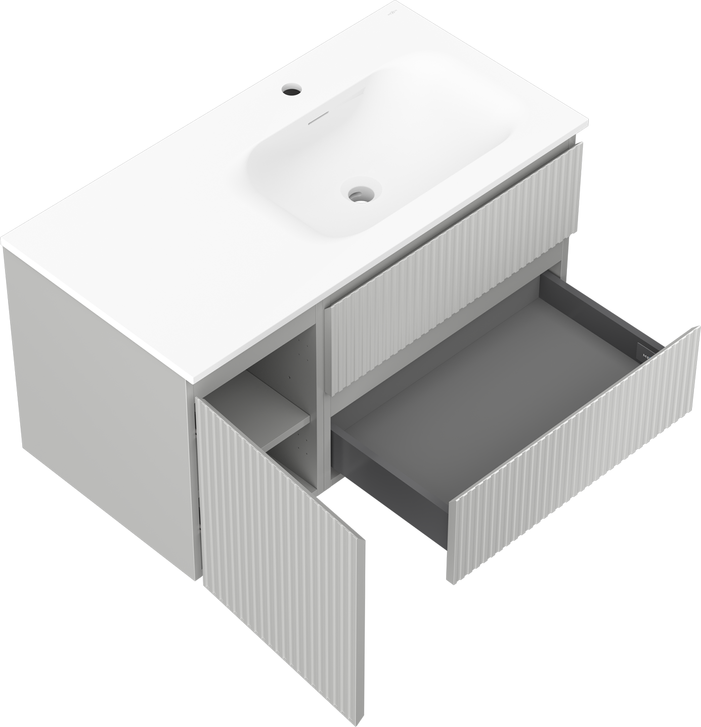 El cuerpo del gabinete se entrega completamente ensamblado, lo que significa máxima comodidad y ahorro de tiempo. No tienes que pasar horas ensamblando el mueble, solo necesitas instalarlo en el lugar elegido en el baño. Es la solución ideal para personas que valoran un montaje rápido y un efecto inmediato.