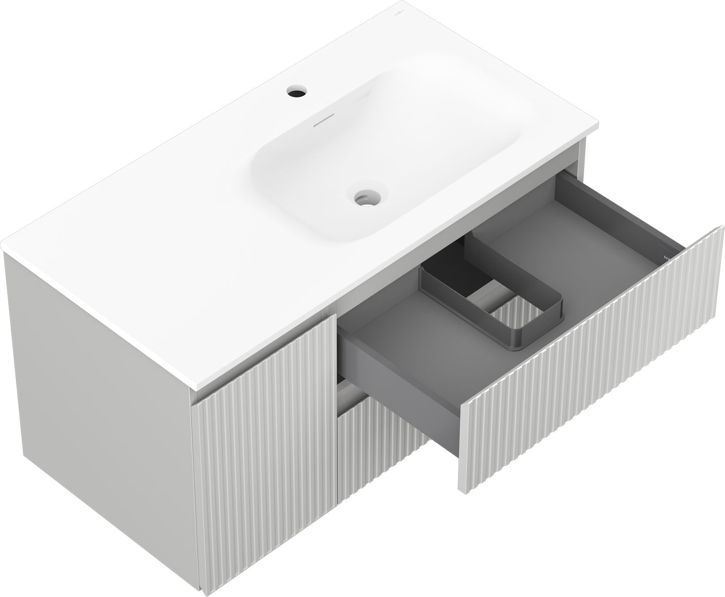 El corte en el cajón está diseñado de tal manera que pueda alojar el sifón, que es necesario en las instalaciones de lavabos. Gracias a esto, el mueble puede ser montado de manera completamente funcional, sin la necesidad de renunciar al espacio en el cajón en favor de la instalación.