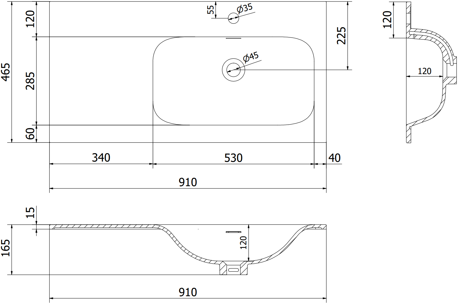 El orificio de rebosadero se llama "orificio de seguridad". Es por donde sale el exceso de agua, lo que evita que el agua se desborde fuera del borde del producto cuando el desagüe inferior está cerrado. Es una solución muy segura y práctica.