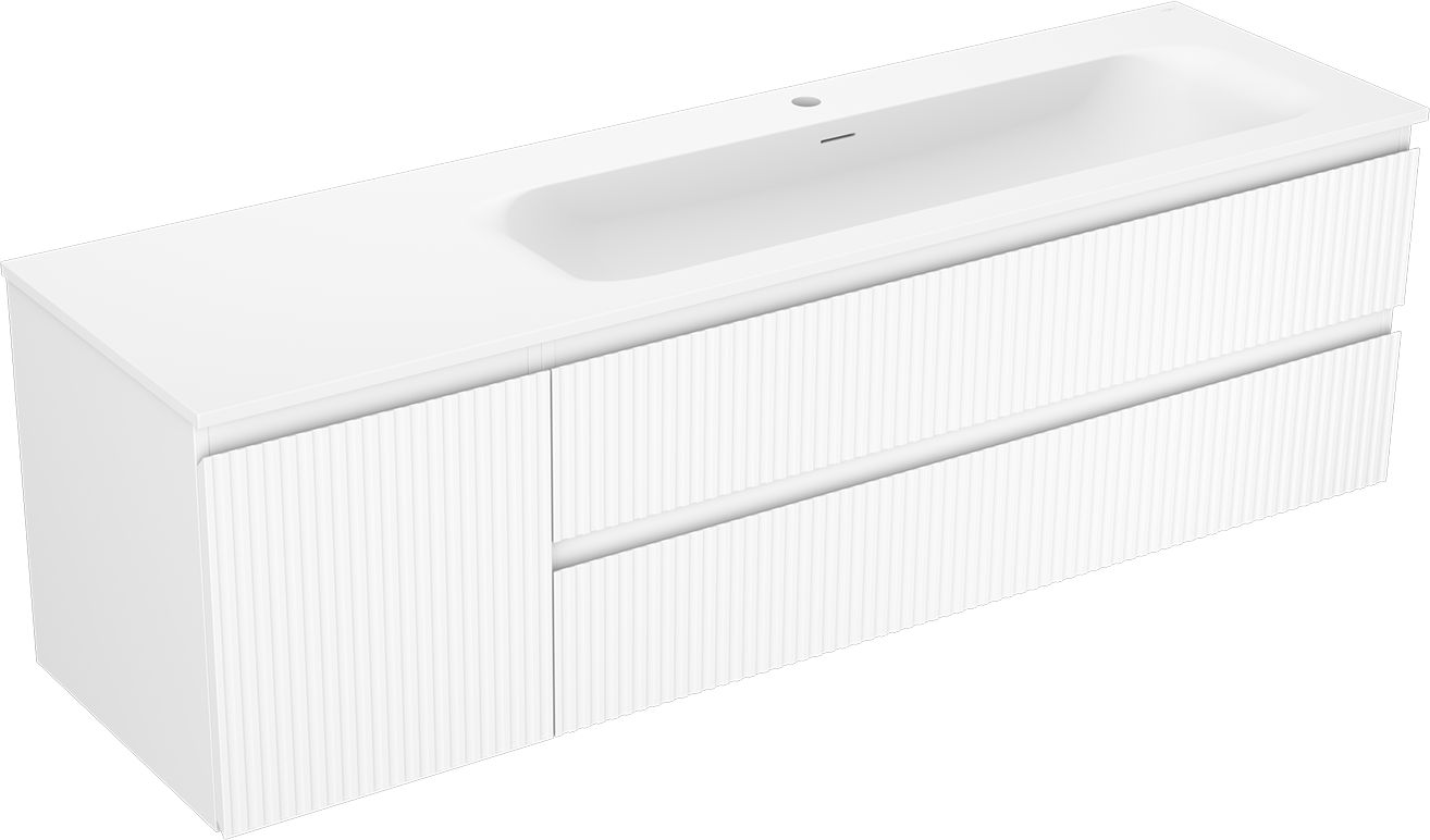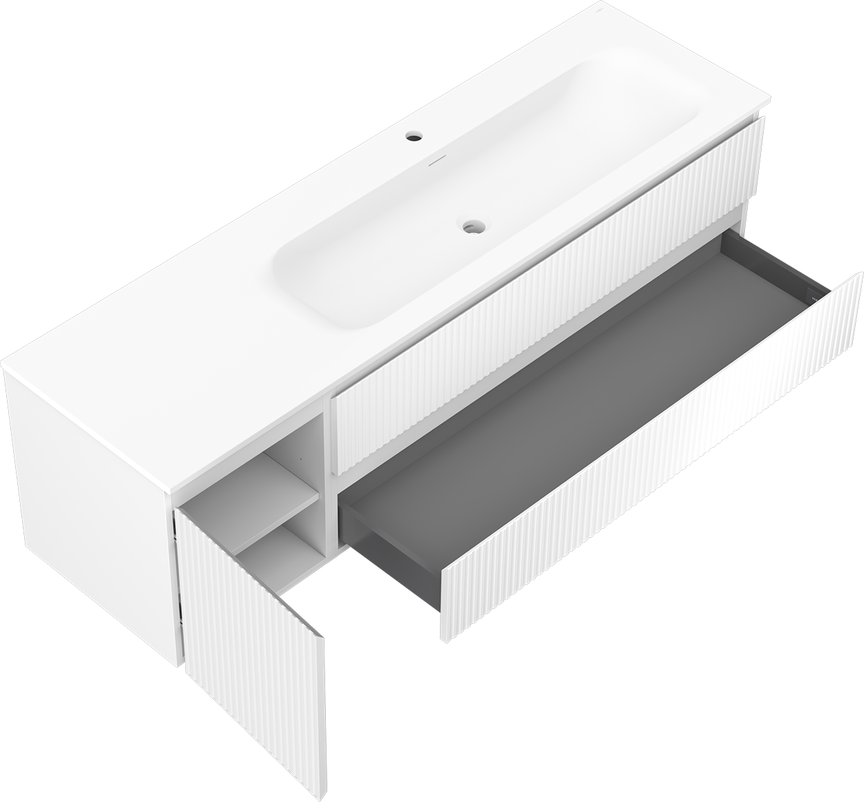 Mexen Rivel Mueble de baño 160 cm con lavabo Vela derecho, 2S, 1D, acanalado, blanco mate - 91A23-16047-3-BBFFF01-W23P01