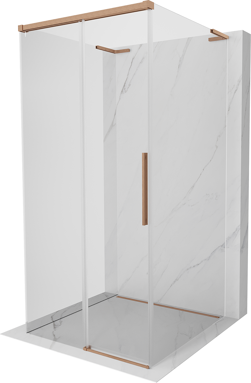 Mexen Rox-3S L cabina de ducha de 3 lados deslizante 120 x 120 cm, transparente, cobre cepillado - 8C2L-120-120-65-00-3S