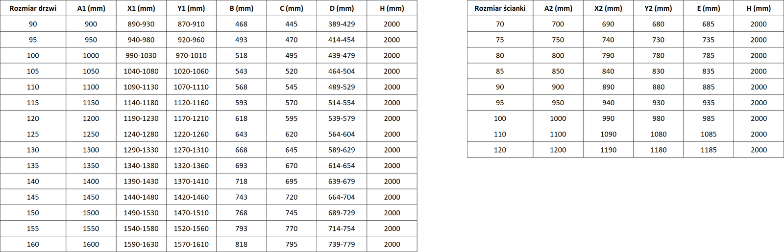 Tamaño: 155x85 cm (puertas 155 cm, paredes 85 cm)