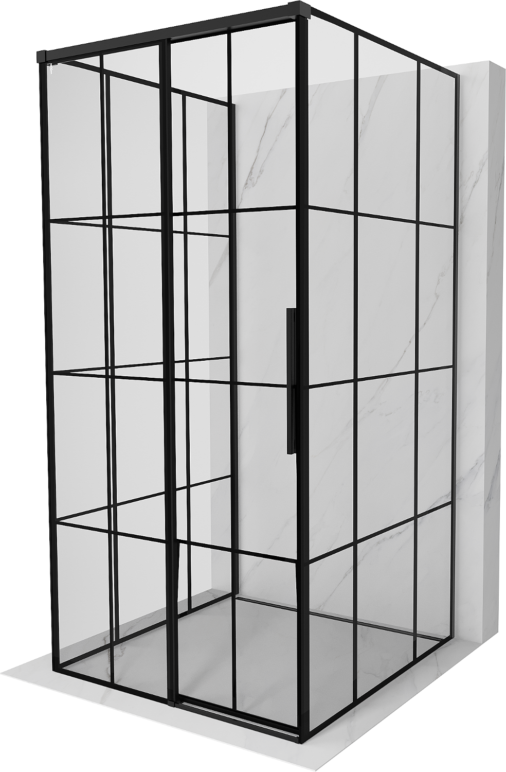 Mexen Rox-3S cabina de ducha de 3 paredes corrediza izquierda 100 x 100 cm, cuadricula negra, negro - 8C2-100-100-70-77-3S-L