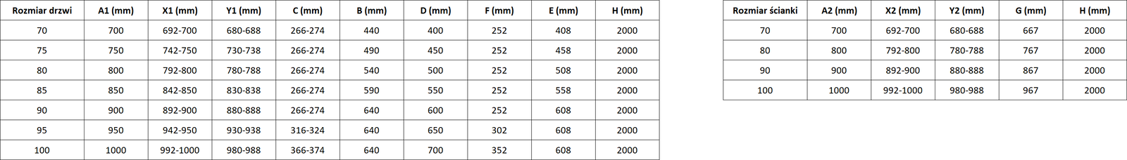 Tamaño: 70x80 cm (puerta izquierda 70 cm, pared 80 cm)