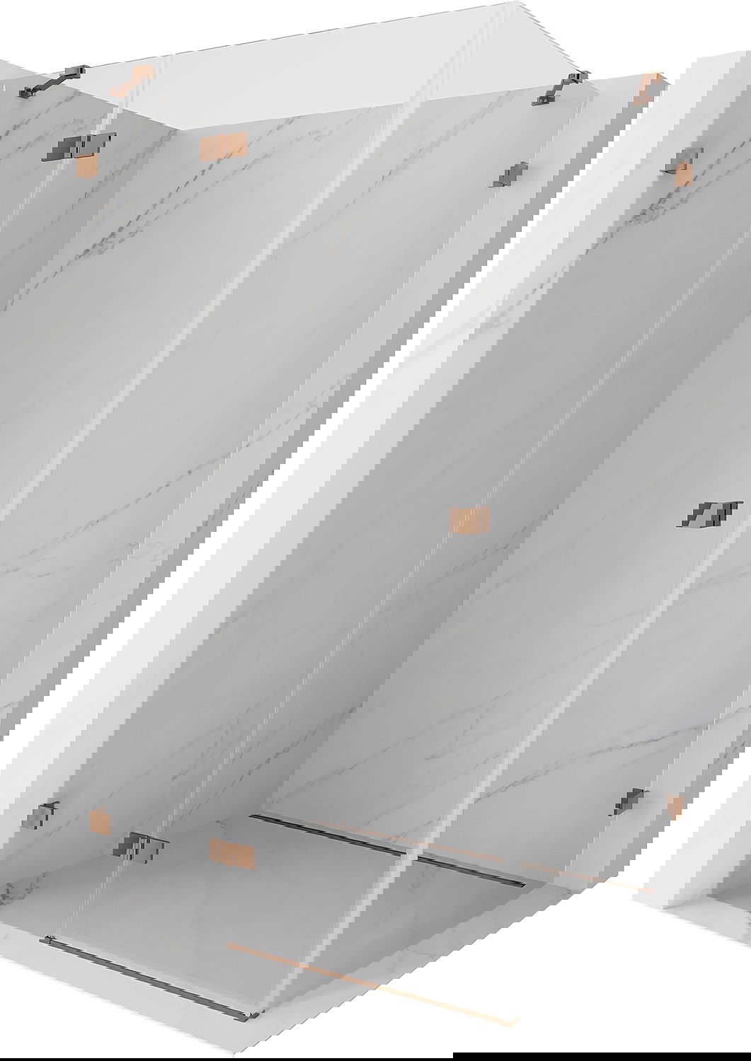 Las abrazaderas y bisagras están hechas de latón muy duradero, y además crean una superficie de vidrio al ras. Es una excelente opción que combina elegancia, durabilidad y diseño moderno. Gracias a tales soluciones, la ducha gana en estética y, al mismo tiempo, facilitan el mantenimiento de la limpieza.