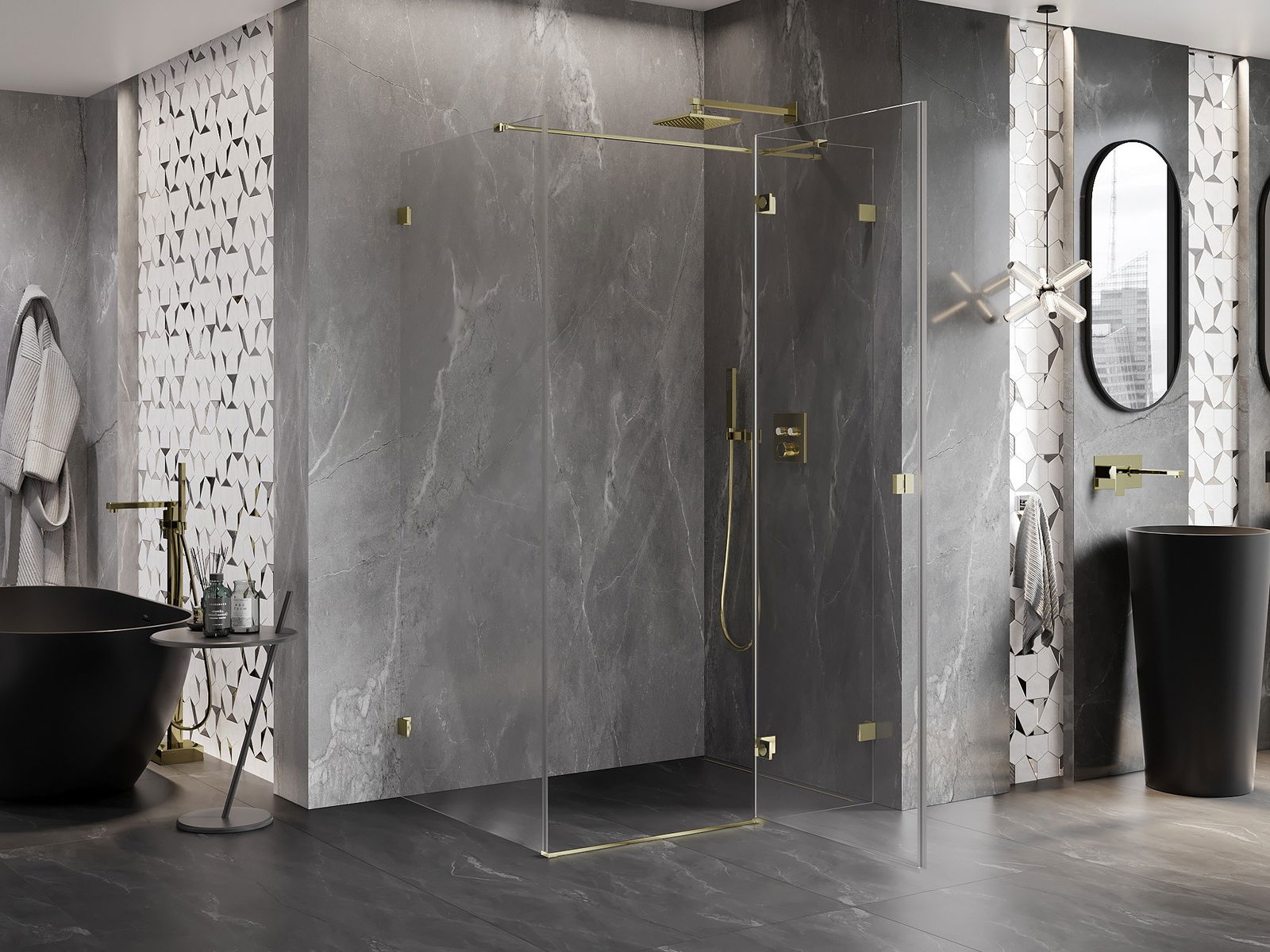 Las abrazaderas y bisagras están hechas de latón muy duradero, y además crean una superficie de vidrio al ras. Es una excelente opción que combina elegancia, durabilidad y diseño moderno. Gracias a tales soluciones, la ducha gana en estética y, al mismo tiempo, facilitan el mantenimiento de la limpieza.