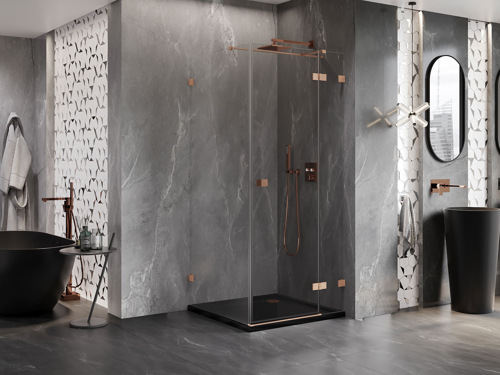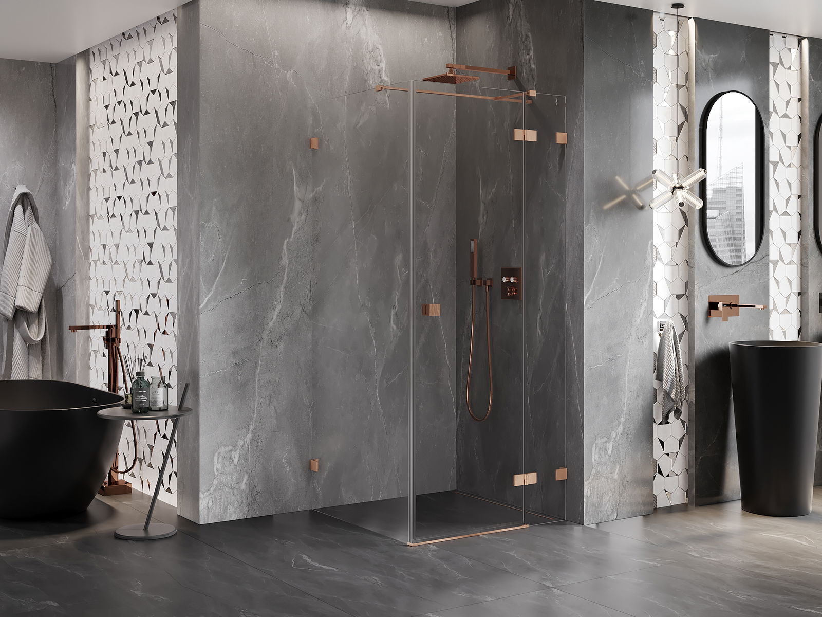 Las abrazaderas y bisagras están hechas de latón muy duradero, y además crean una superficie de vidrio al ras. Es una excelente opción que combina elegancia, durabilidad y diseño moderno. Gracias a tales soluciones, la ducha gana en estética y, al mismo tiempo, facilitan el mantenimiento de la limpieza.