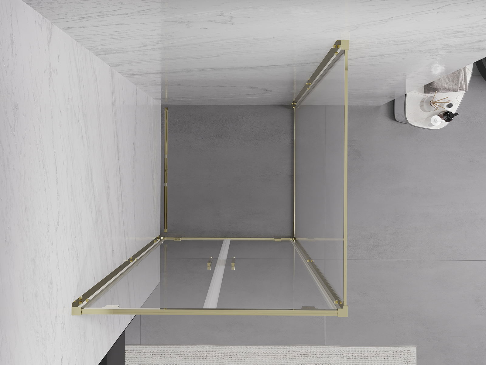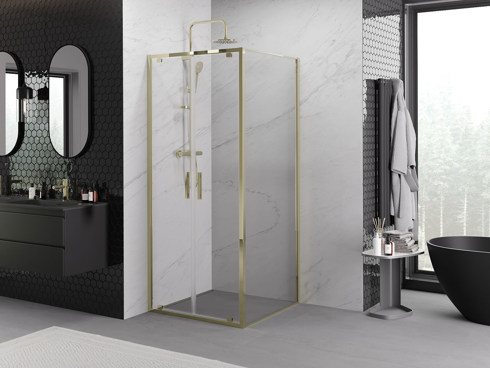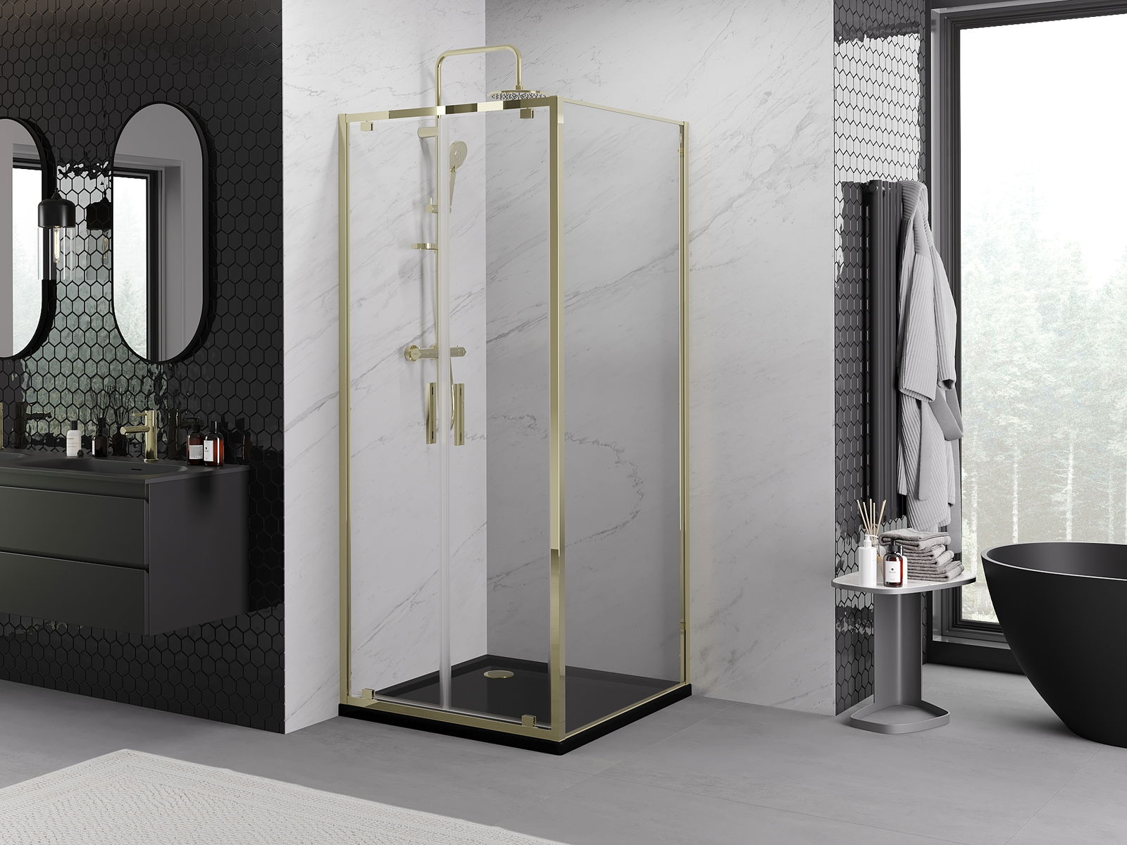 Mexen Exo cabina de ducha abatible 120 x 120 cm, transparente, dorada - 8182-120-120-50-00