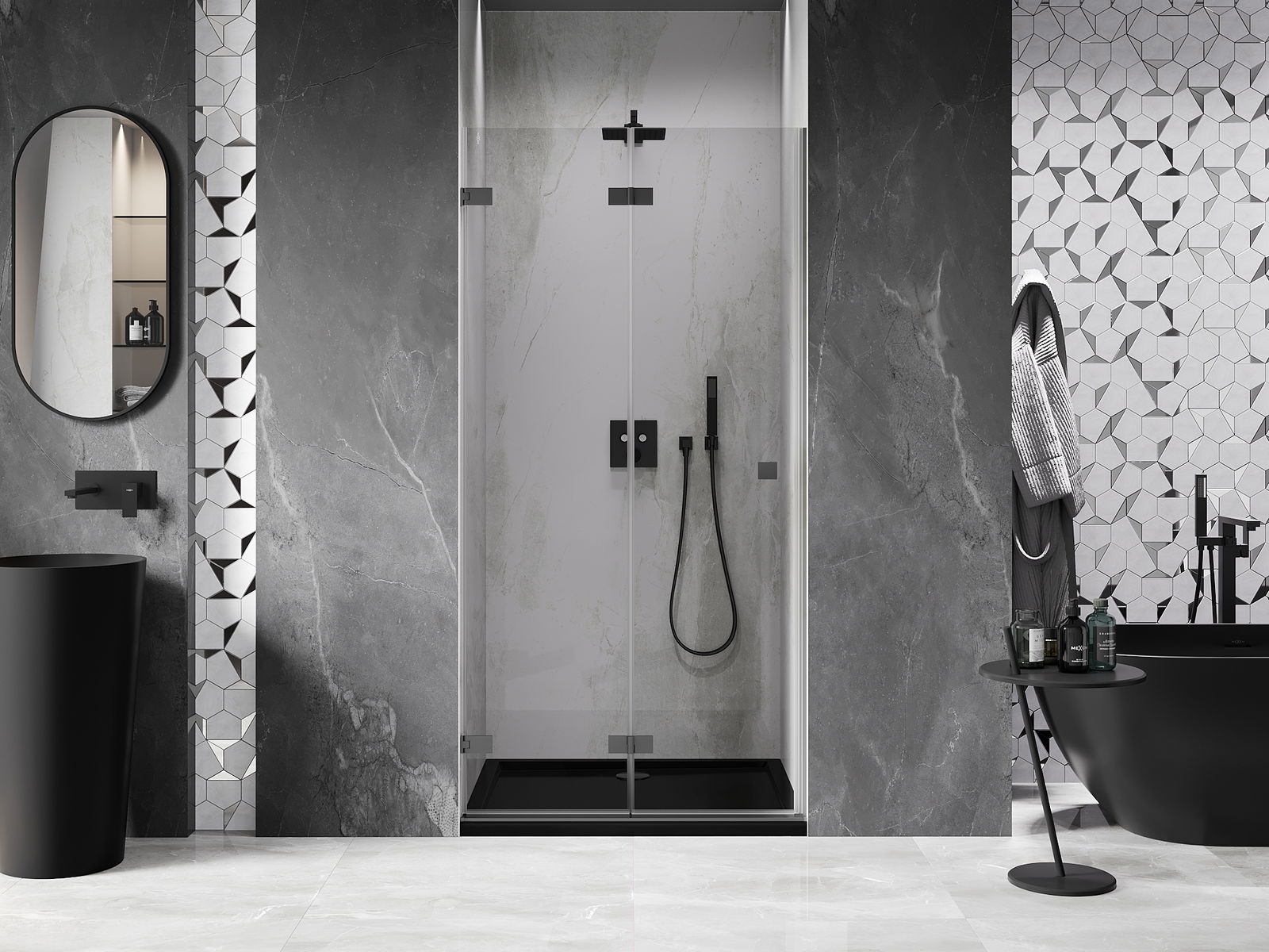 La posibilidad de plegar las puertas, tanto hacia afuera como hacia adentro, permite obtener más espacio cuando no se está utilizando la ducha. Es una solución ideal para baños más pequeños, aprovechando al máximo el espacio disponible.