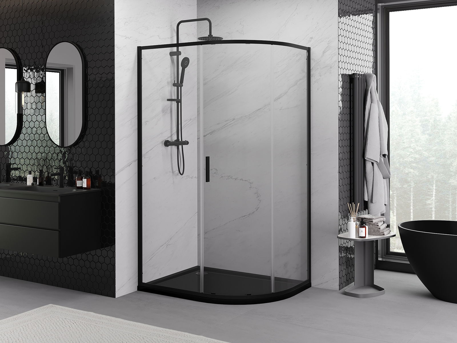 Mexen Exo cabina de ducha semicircular asimétrica corredera 120 x 80 cm, transparente, negra - 8131-120-080-70-00