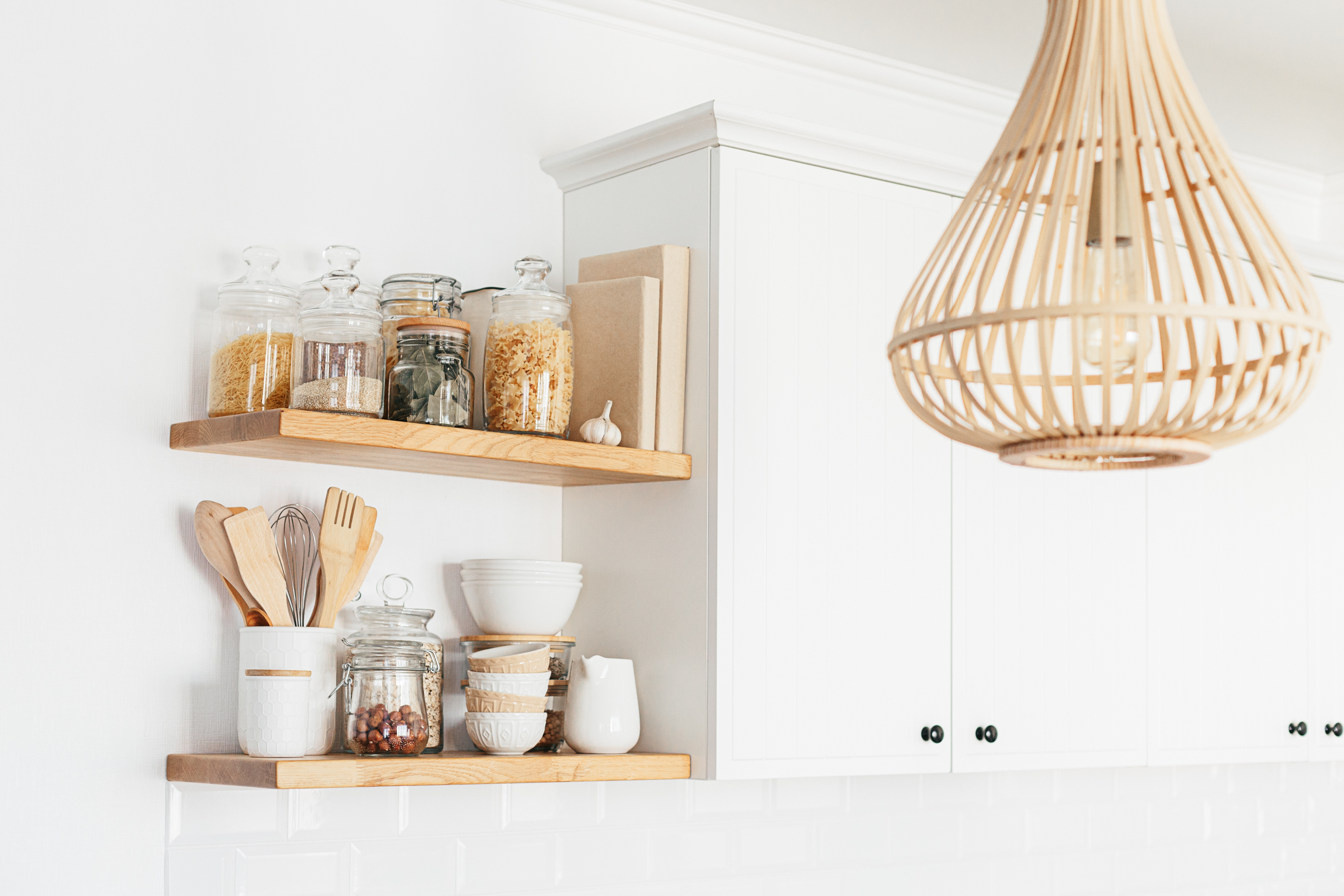¿Estantes de pie o colgantes? Estantes de cocina universales