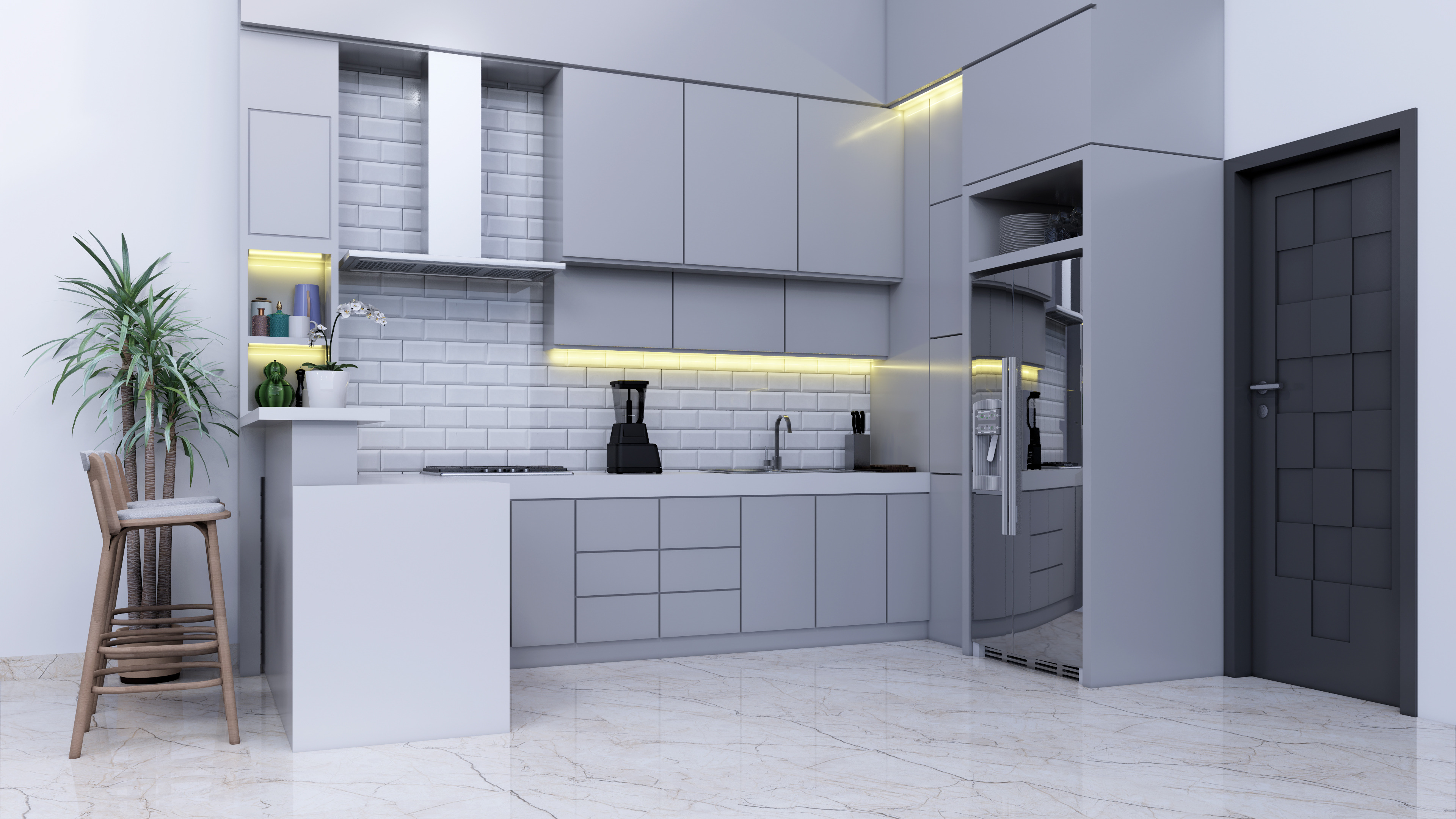 Una idea intrigante que vale la pena considerar podría ser el terrazo, es decir, la piedra artificial. Tiene un aspecto tan elegante como el material natural. Es más económico y fácil de mantener limpio. No tienes que preocuparte de que el agua o los restos de comida dejen marcas en él.