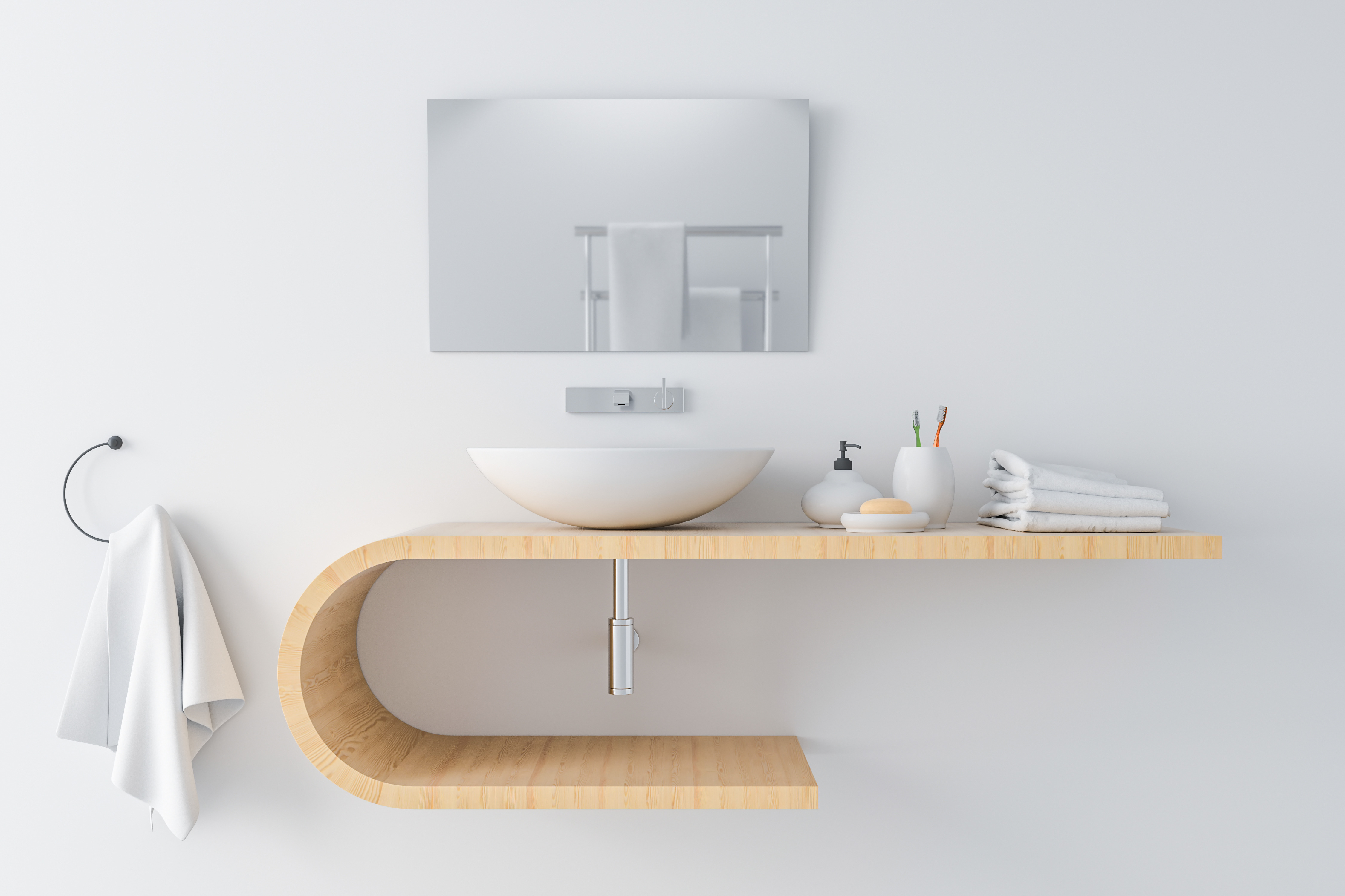 - con lavabos colocados sobre la encimera, los colgadores de toallas pueden colocarse debajo de la encimera,