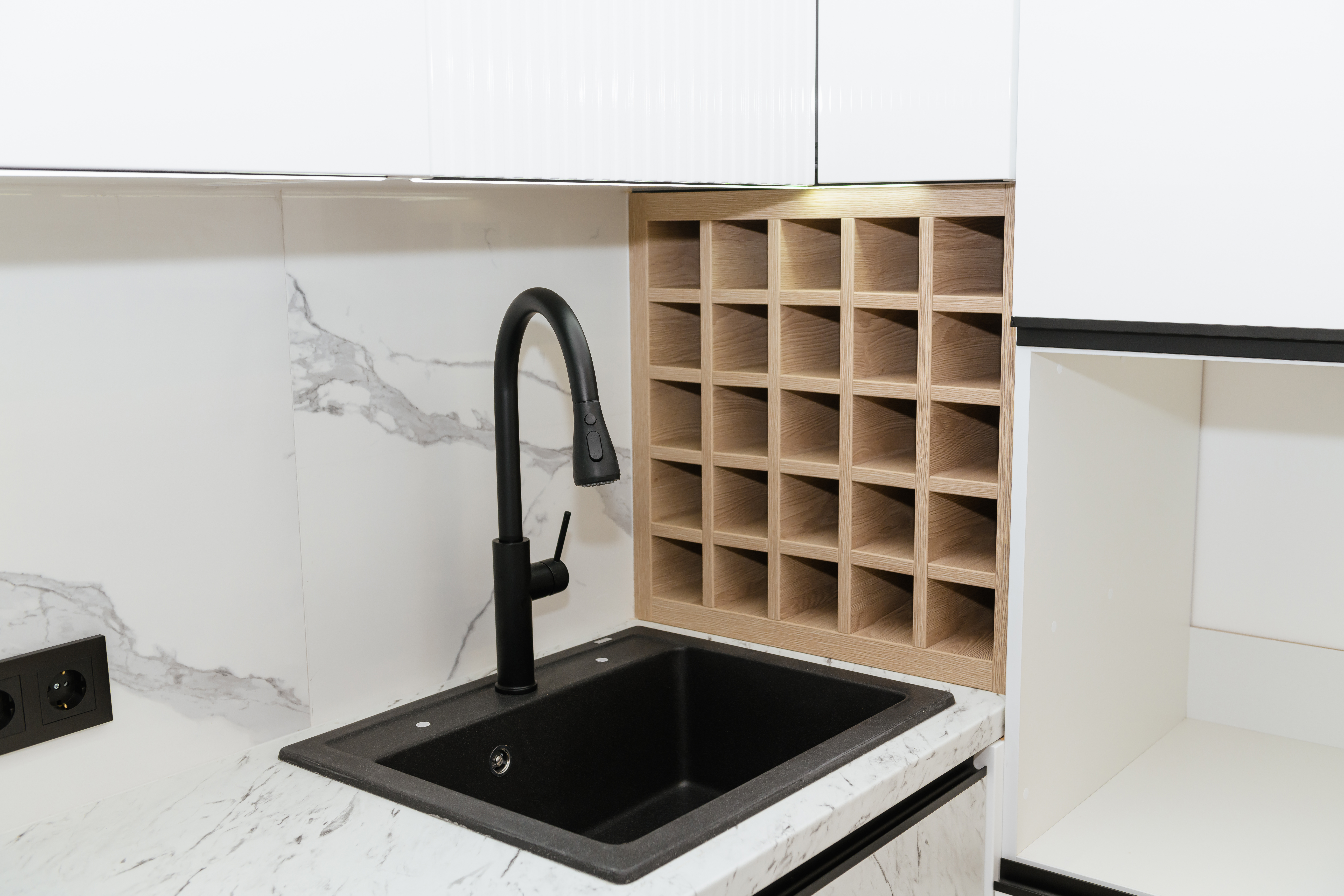 Por lo tanto, antes de comprar, debes medir cuidadosamente el ancho interno del armario. El fregadero de cocina debe encajar libremente en su interior. Si tienes un armario colgante bajo, la instalación del fregadero elegido puede ser difícil o incluso imposible. En esta etapa, también vale la pena considerar qué planeas colocar adicionalmente debajo del fregadero. Generalmente, este es el lugar perfecto para un cubo de basura para la clasificación de residuos u otros accesorios de cocina.
