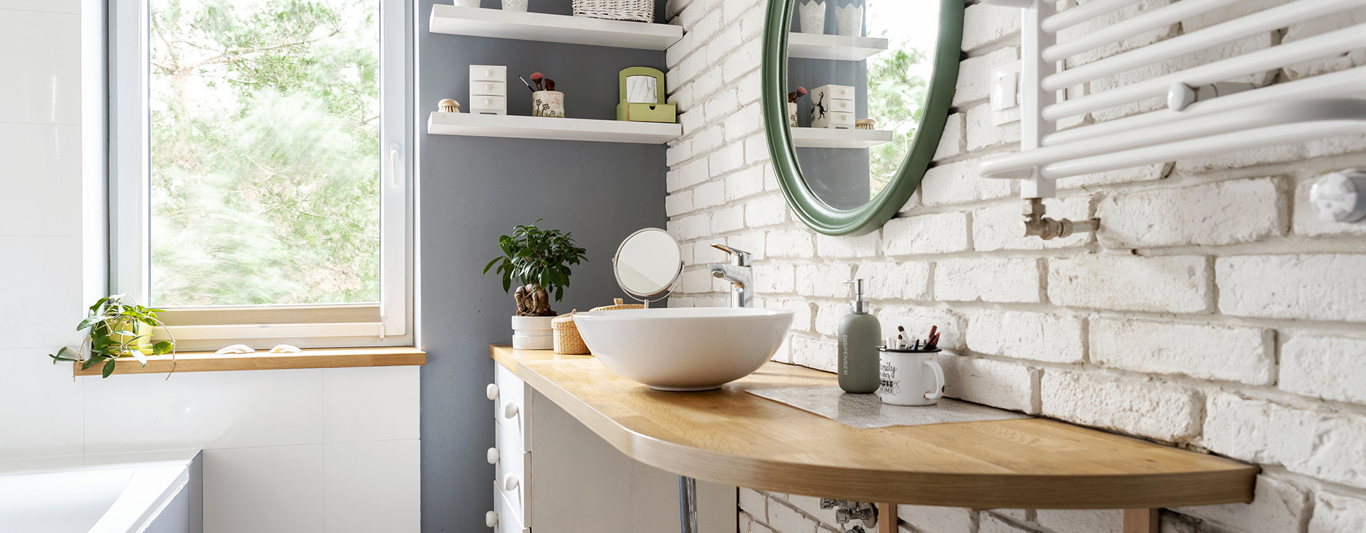 Otra forma de destacar nuestro baño escandinavo es con ladrillo, ya sea rústico o blanqueado. Este elemento también se puede obtener con las imitaciones que ofrecen las baldosas cerámicas hechas de esta forma.